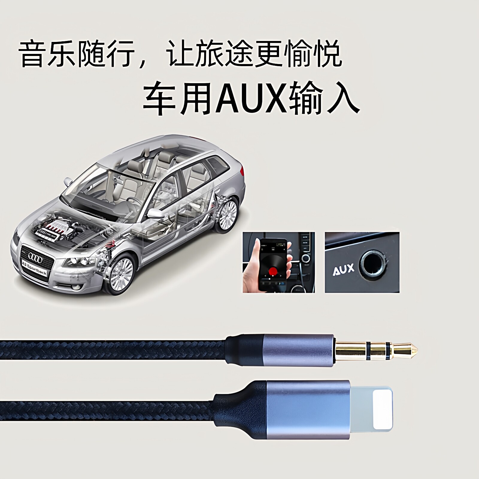 aux音频线适用苹果转3.5mm iphone手机连接车载电钢琴架子鼓伴奏
