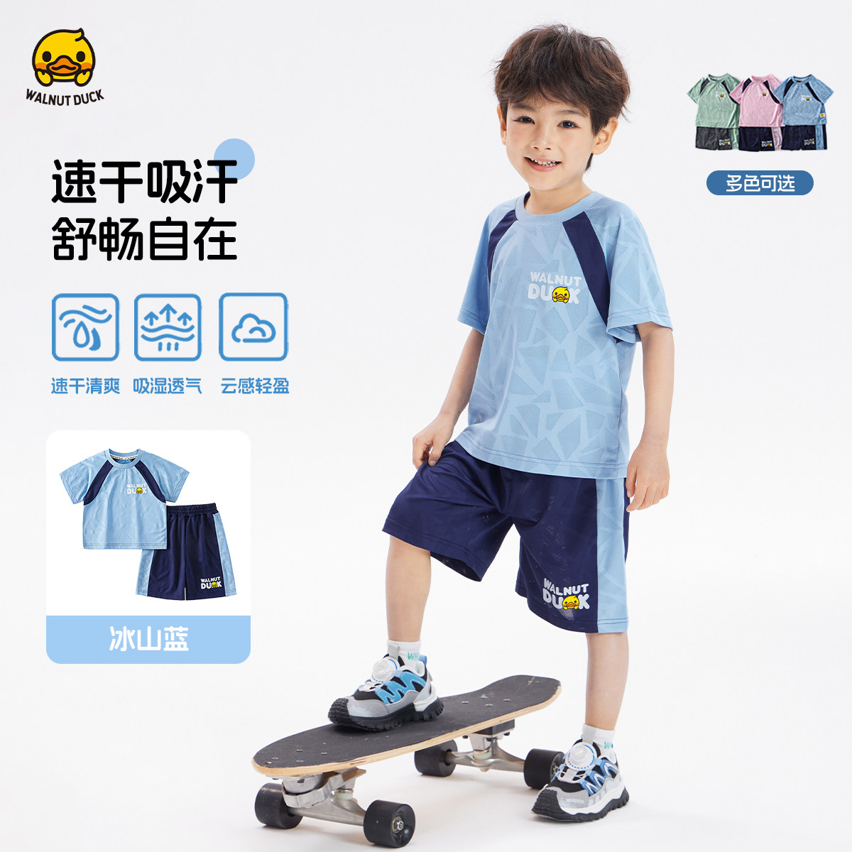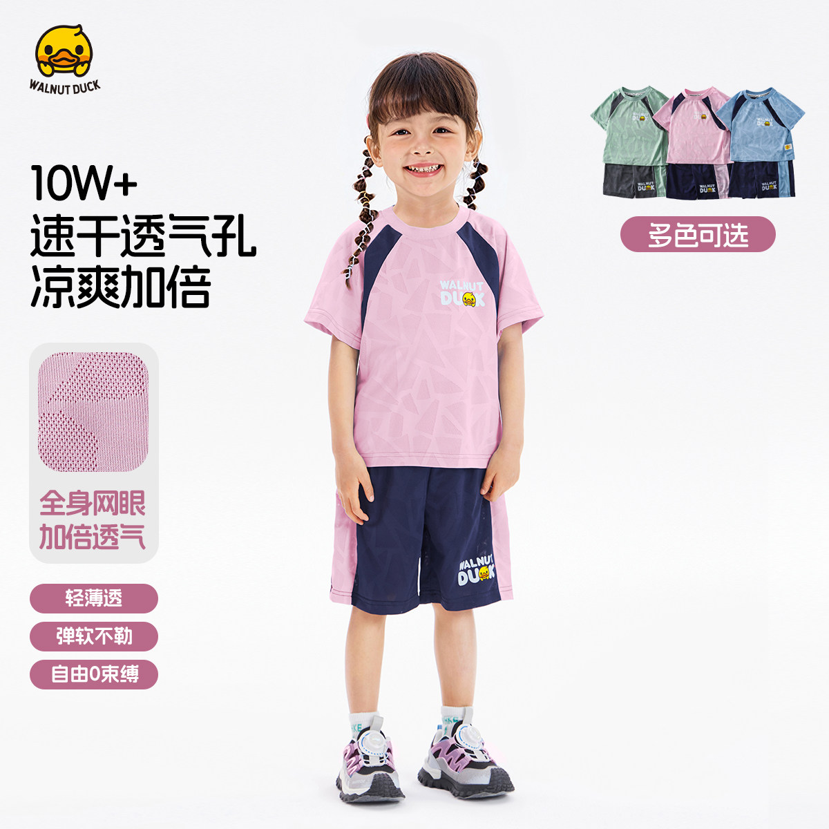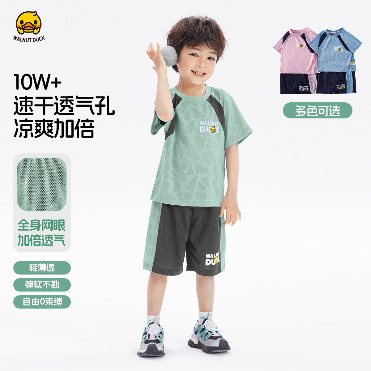 【夏季】核桃小黄鸭运动短裤透气五分裤男女童套装短袖T恤两件套