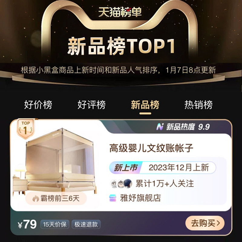 丸丫V2防摔蚊帐婴儿2025新款专用儿童纹帐家用卧室防掉床全底全罩