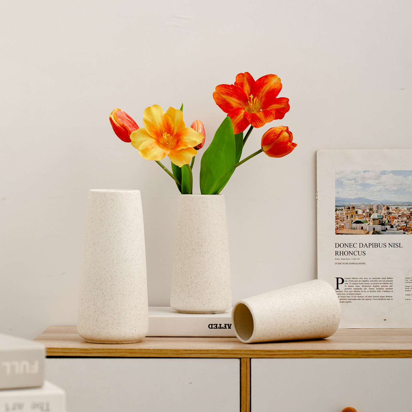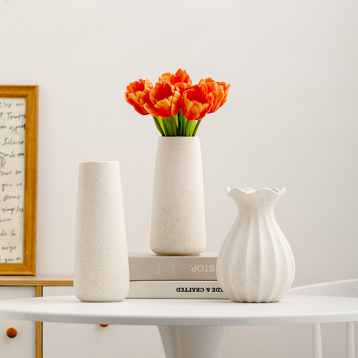 陶瓷花瓶客厅插花摆件轻奢高级感仿真鲜花餐桌花器艺术感郁金香