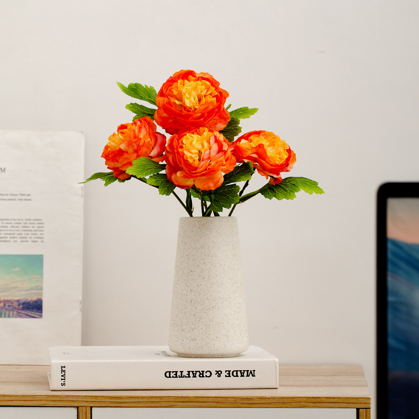 仿真橘子小花瓶摆件客厅插花水培植物鲜花绿萝高颜值桌面装饰摆件