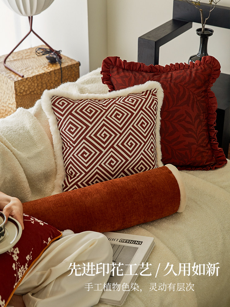 轻奢复古红色沙发靠垫床头暖手新婚礼物枕套