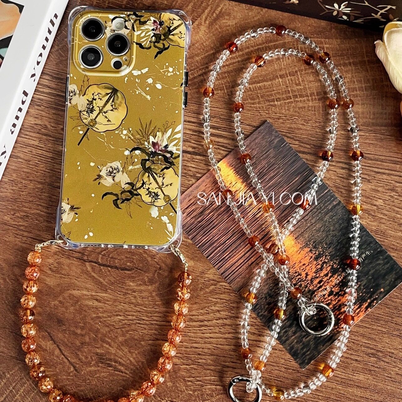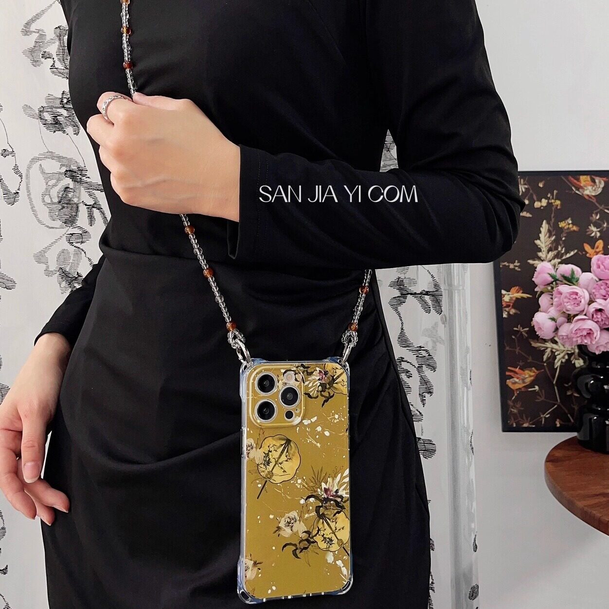 新中式国潮团扇iPhone15四角斜挎手提magic5手机壳链条防摔挂绳s18适用小米14/13华为mate60荣耀100新款oppo