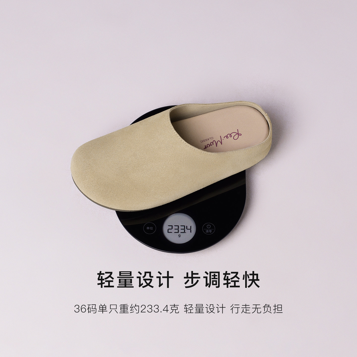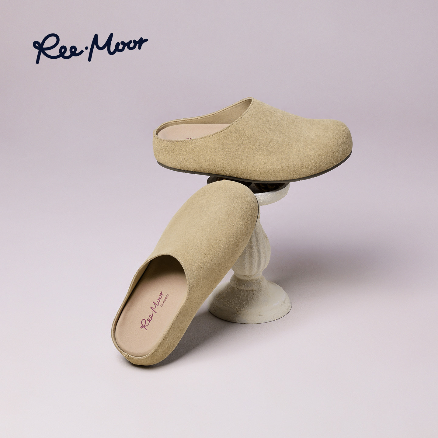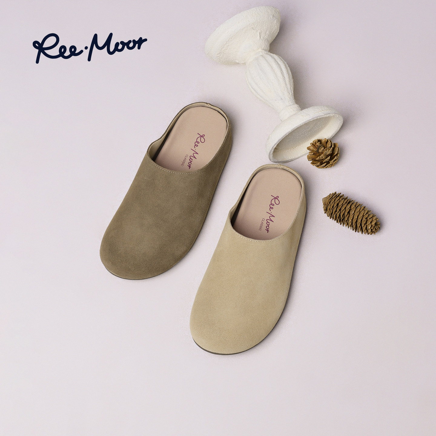REEMOOR睿慕2026春夏新款反绒皮勃肯鞋女包头半拖一脚蹬懒人鞋