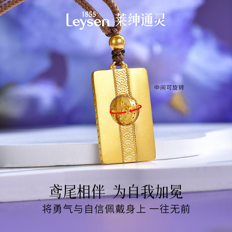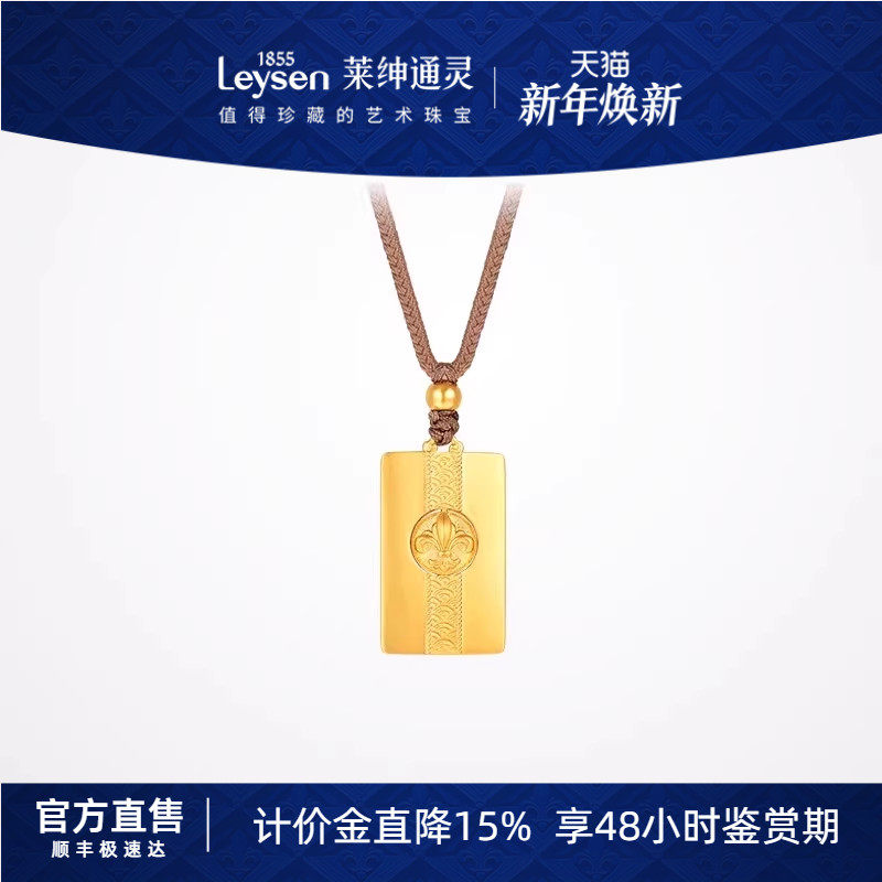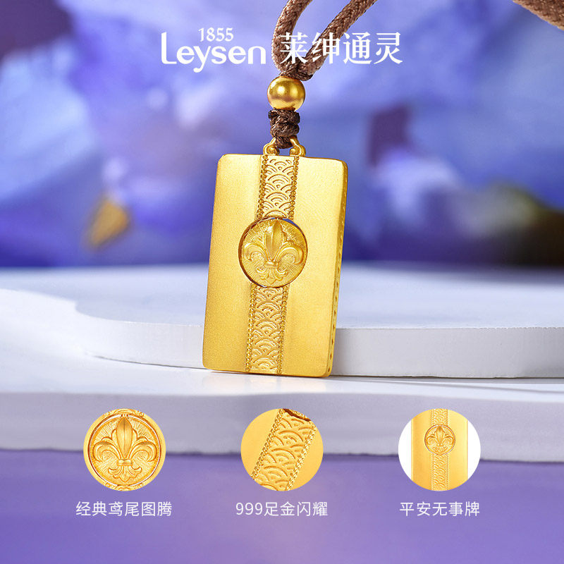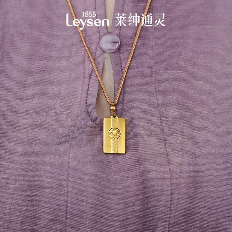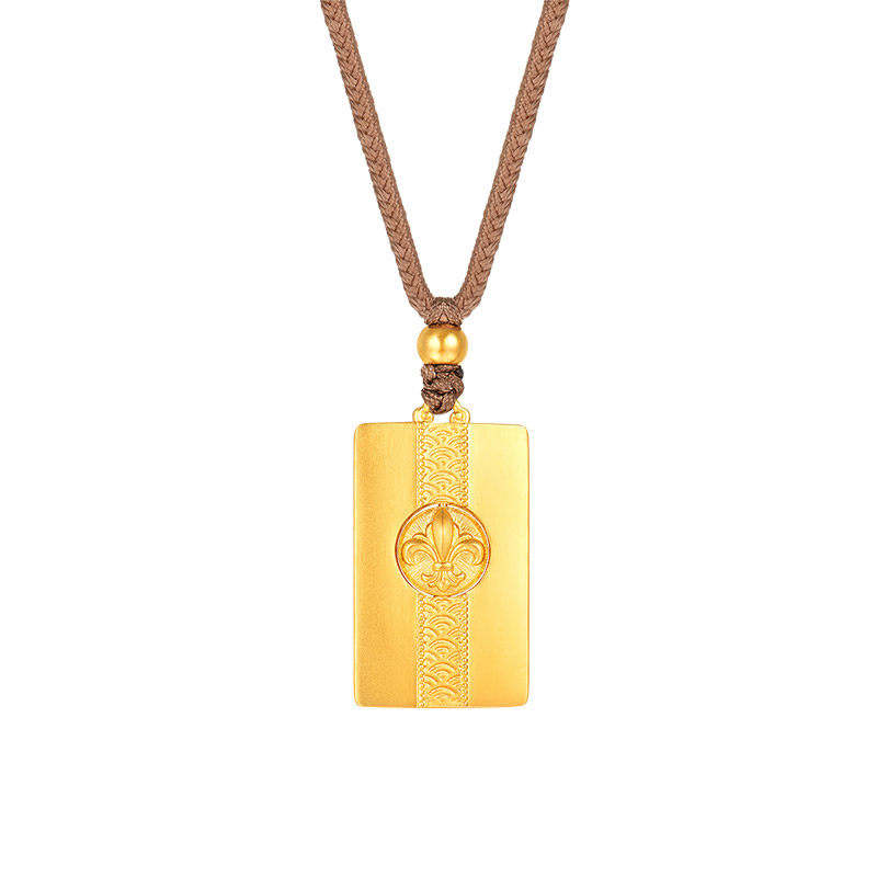 【计价金】莱绅通灵 鸢尾系列 如意方牌足金999古法黄金吊坠 百搭