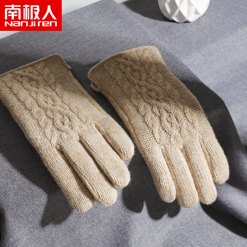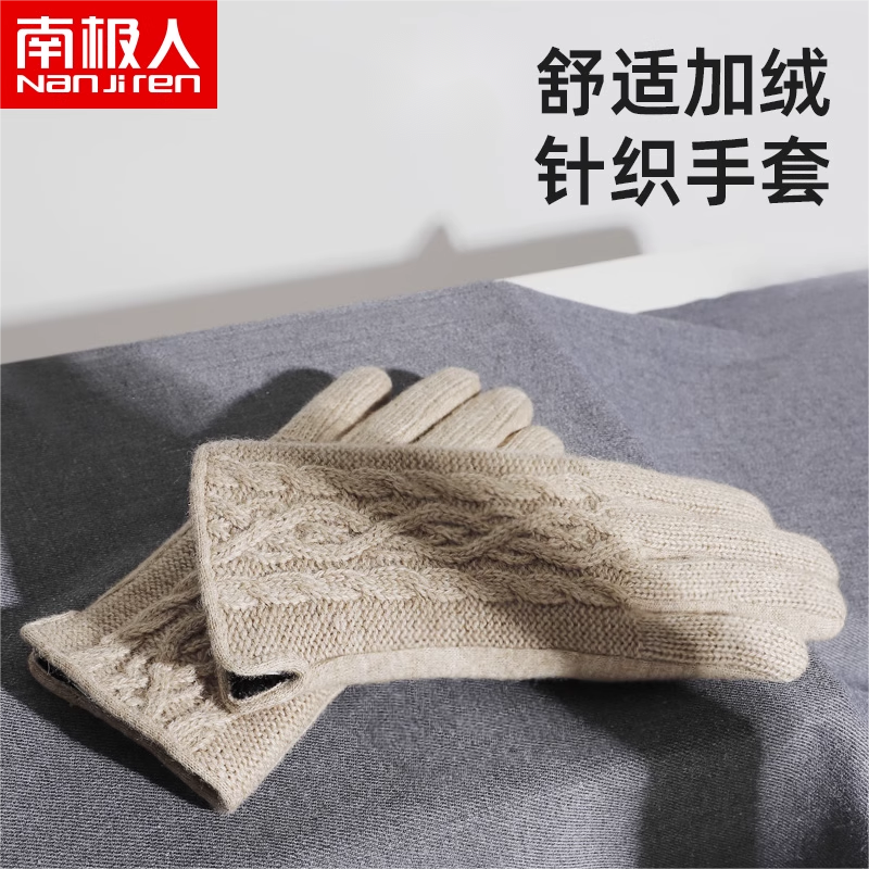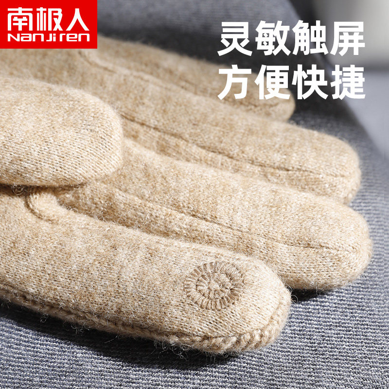 南极人加厚加绒针织保暖男士毛线手套冬季骑行防寒保暖可触屏A