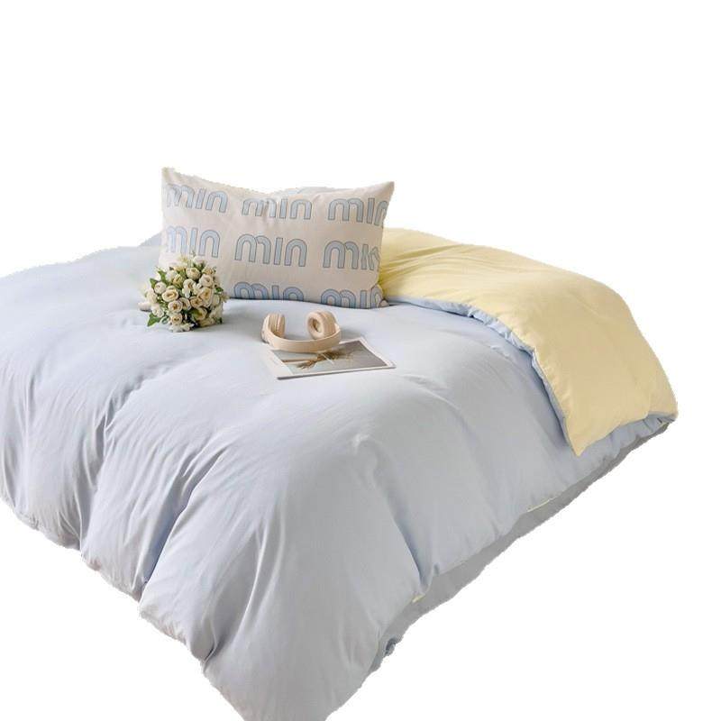 25新款水洗棉双拼床上四件套家用卧室床单三件套被套被罩可机水洗