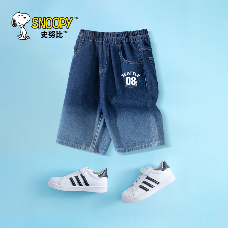 史努比童装男童短裤外穿大童中裤夏季薄款裤子儿童五分牛仔裤夏款