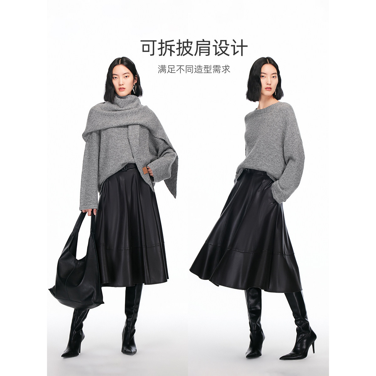 可拆披肩设计 满足不同造型需求;圆领领型