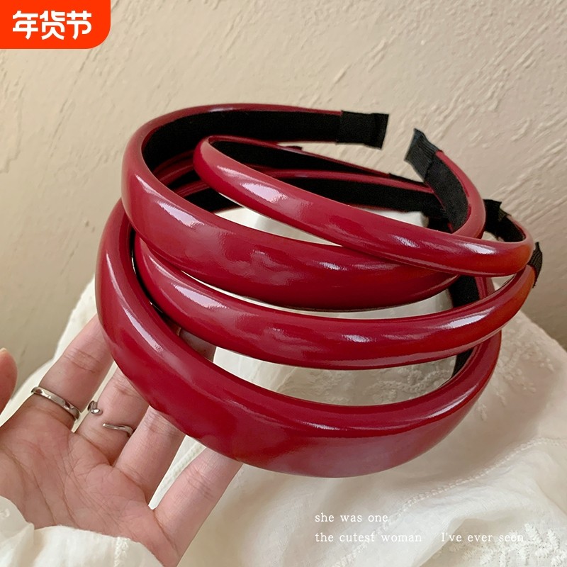 显白港风复古安可拉红色发箍女款洋气新年发卡高颅顶过年洗脸头箍
