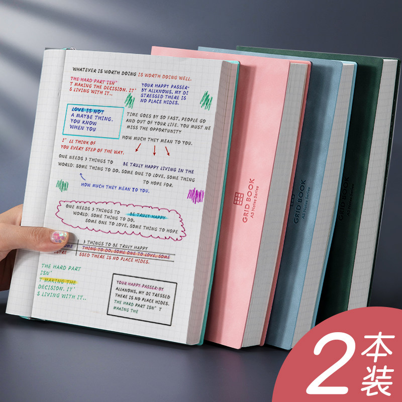 网格本手绘画画方格本简约ins风可爱日记a5格子本大学生加厚笔记本子b5记事本手帐本手账本a4平摊多功能纸张