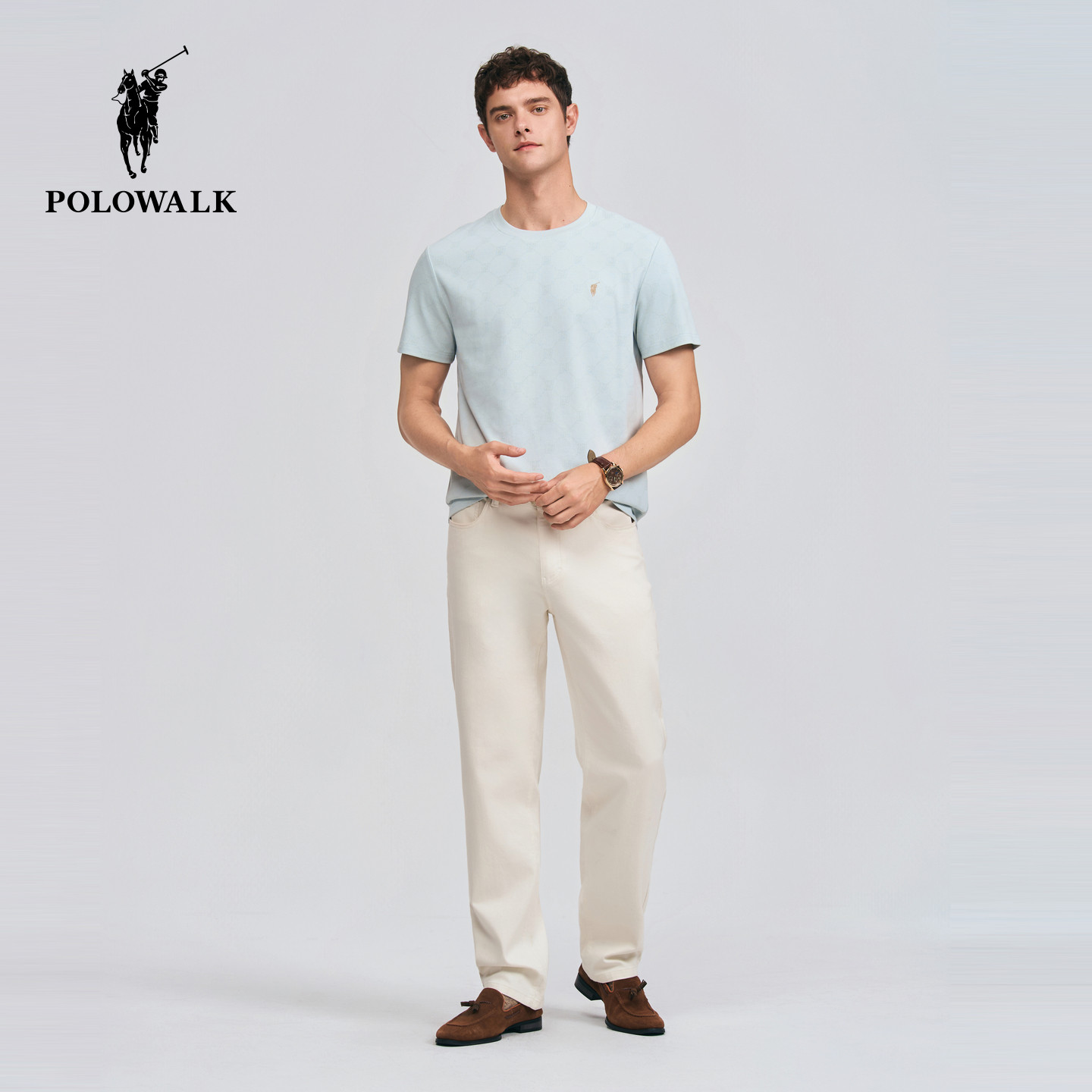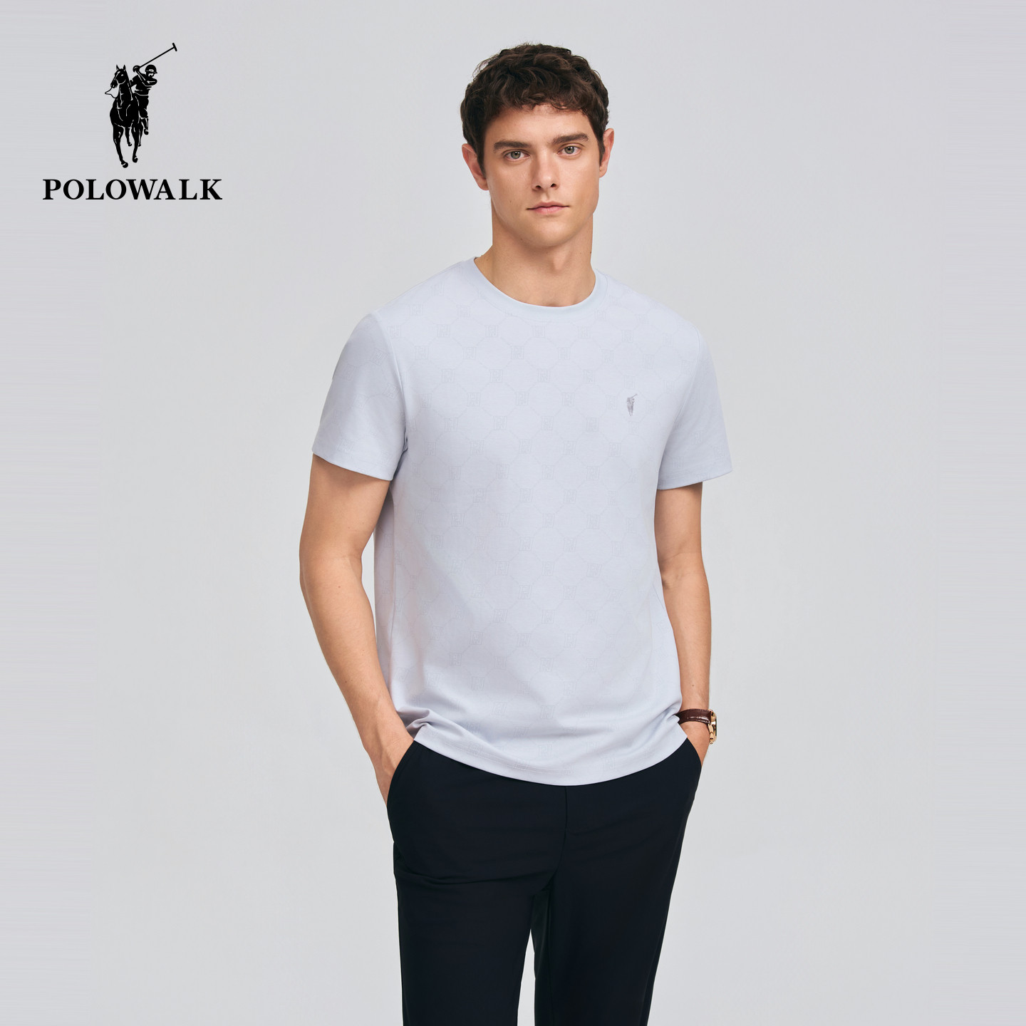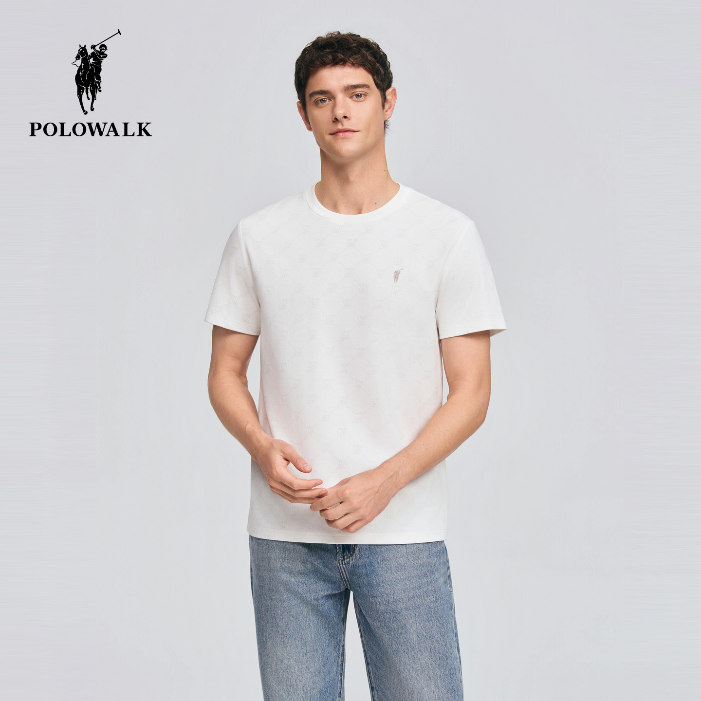 POLOWALK短袖2026夏季新款男士圆领老花T恤休闲夏装套头上衣