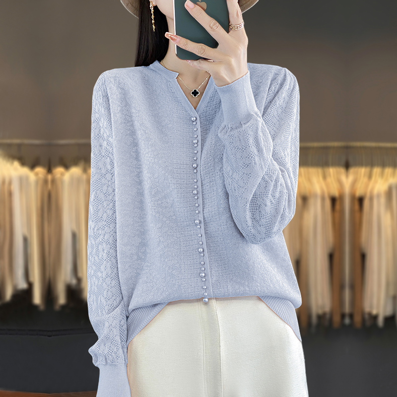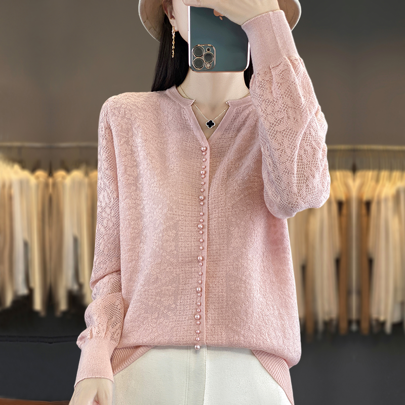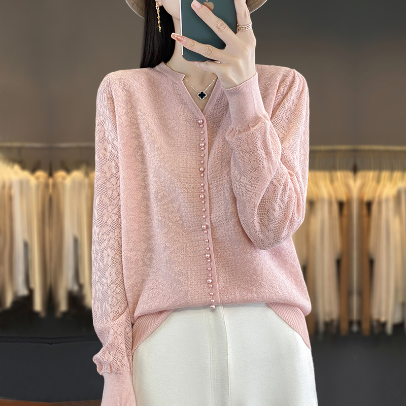 新款羊毛开衫外套女针织打底衫V领2025年春季羊绒外搭短款毛衣女