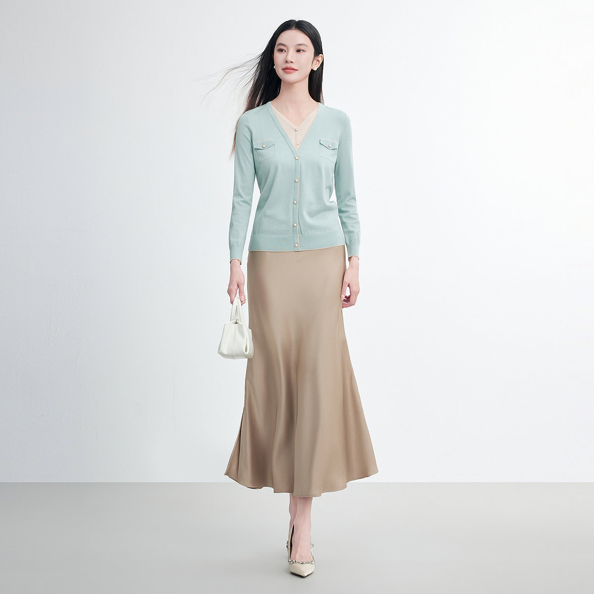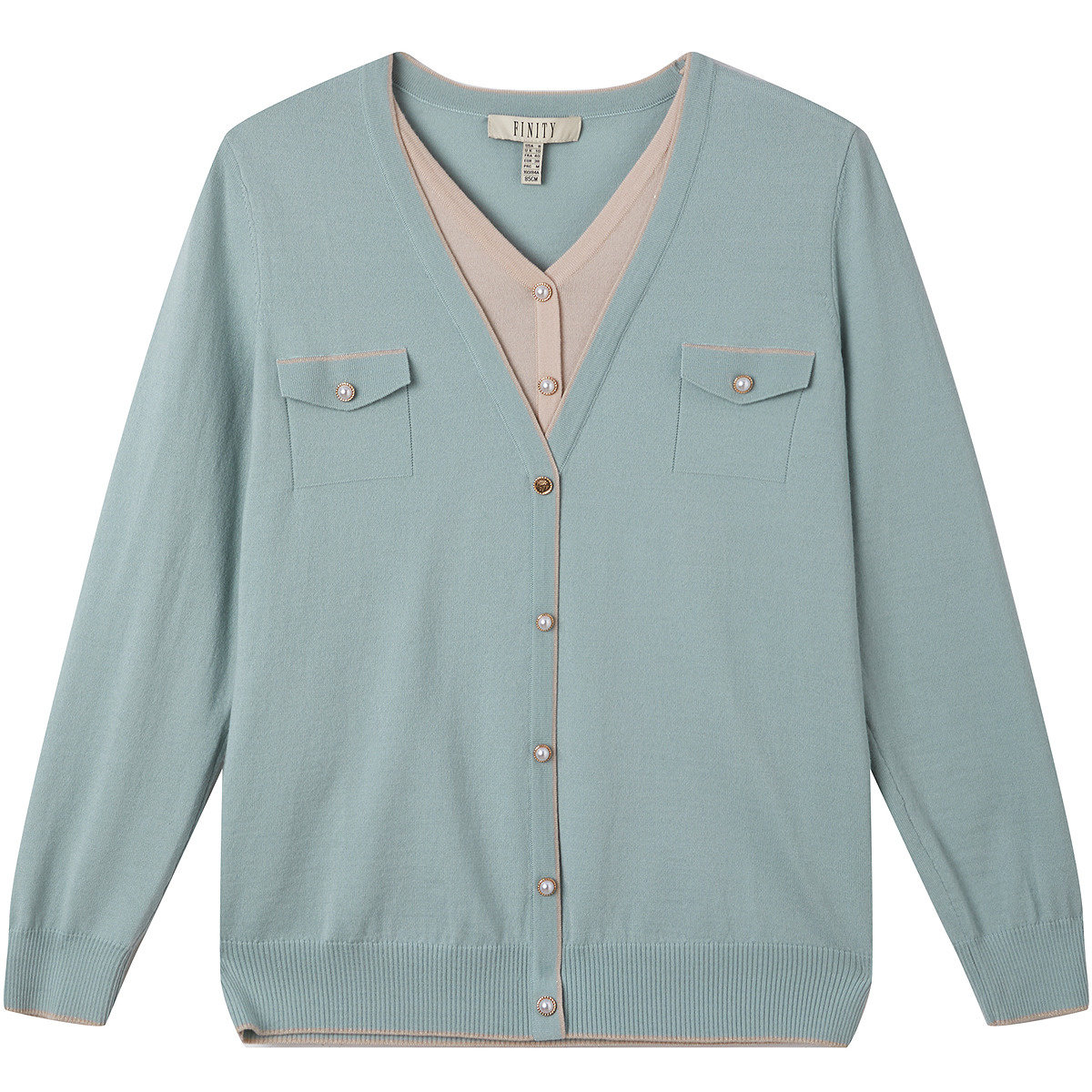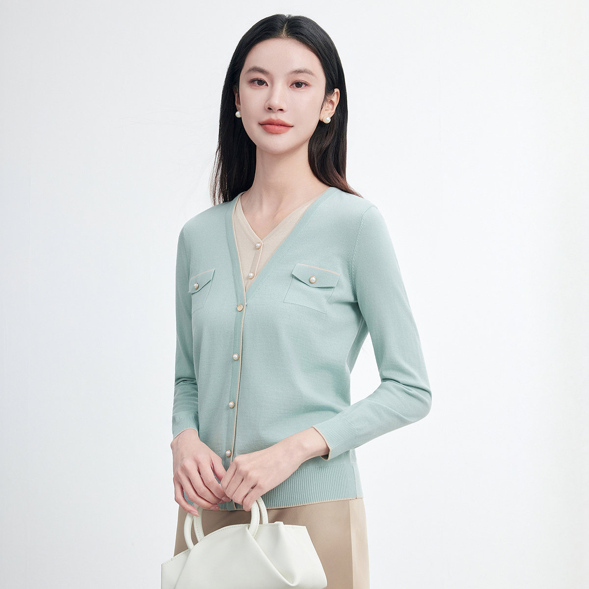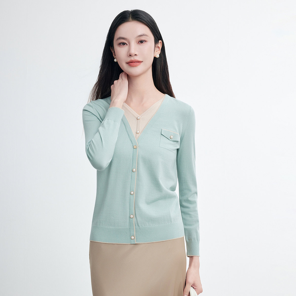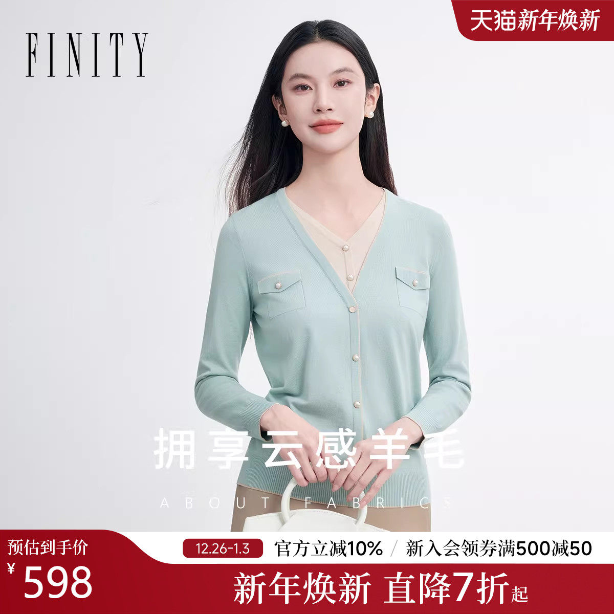 FINITY菲妮迪羊毛衫2026年春季新款简约气质V领拼接百搭上衣女士