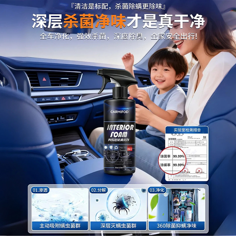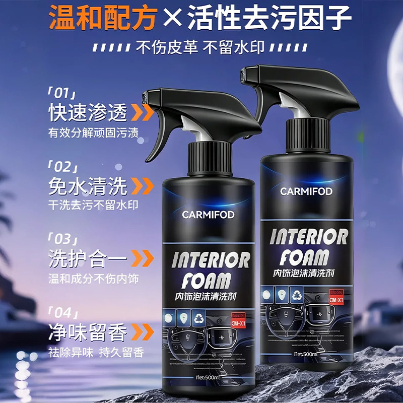 德国汽车内饰清洗剂真皮革座椅泡沫免洗去污顶棚翻新车内清洁神器