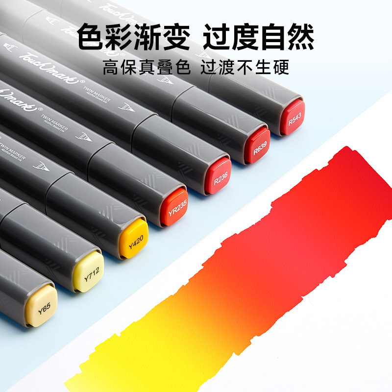 泰驰Touchmark软头马克笔美术专用油性画笔套装双头速干水彩笔小学生初中生手绘设计考级可叠色60/80/120色笔