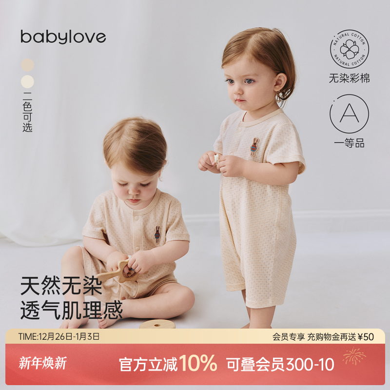 babylove婴儿连体衣夏季薄款短袖彩棉提花透气哈衣爬服宝宝夏装