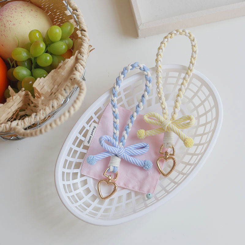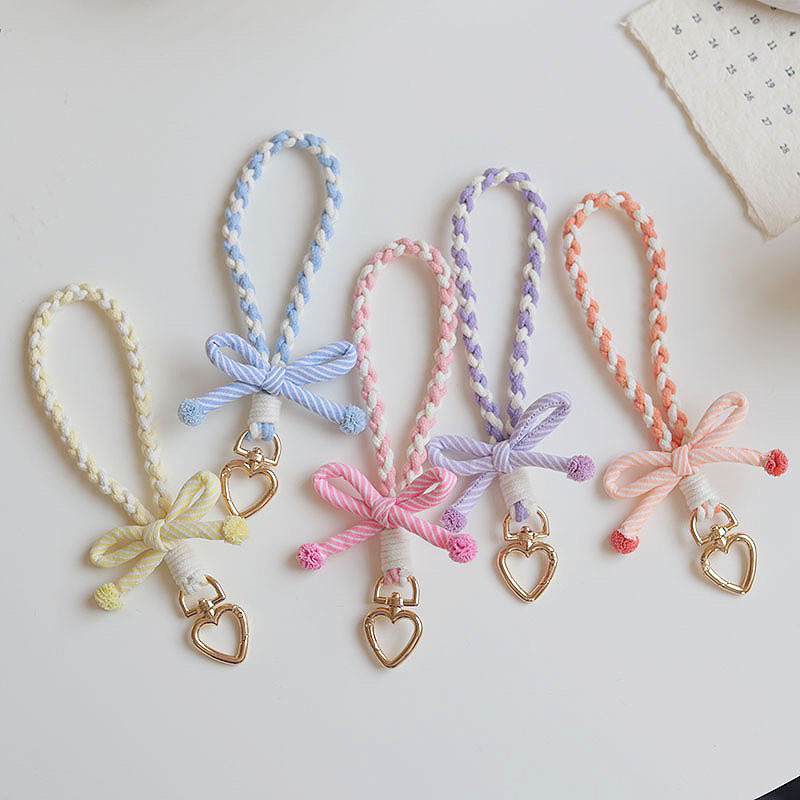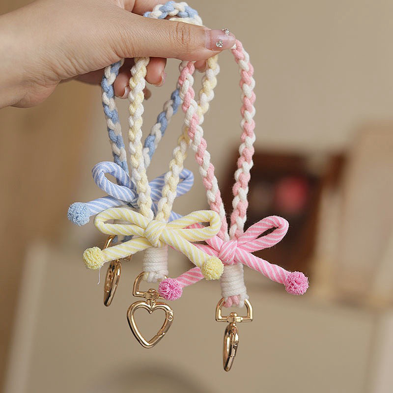 原创设计 2025春夏新款条纹蝴蝶结钥匙扣可爱少女糖果色手机腕绳