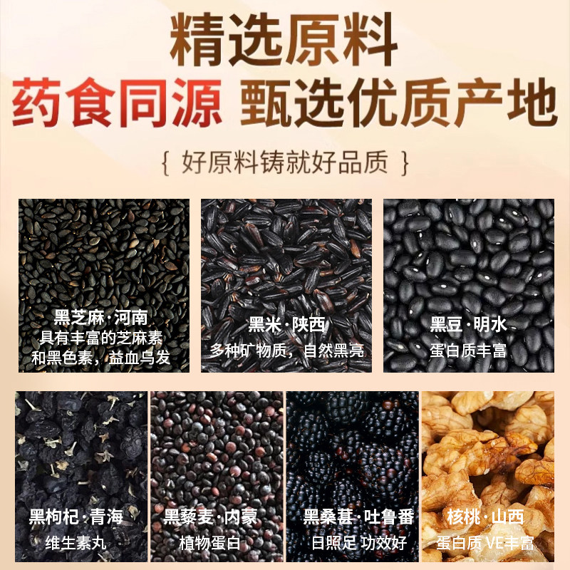 黑芝麻糊核桃黑豆代餐粉饱腹营养早餐食品即食速食冲饮黑米桑葚