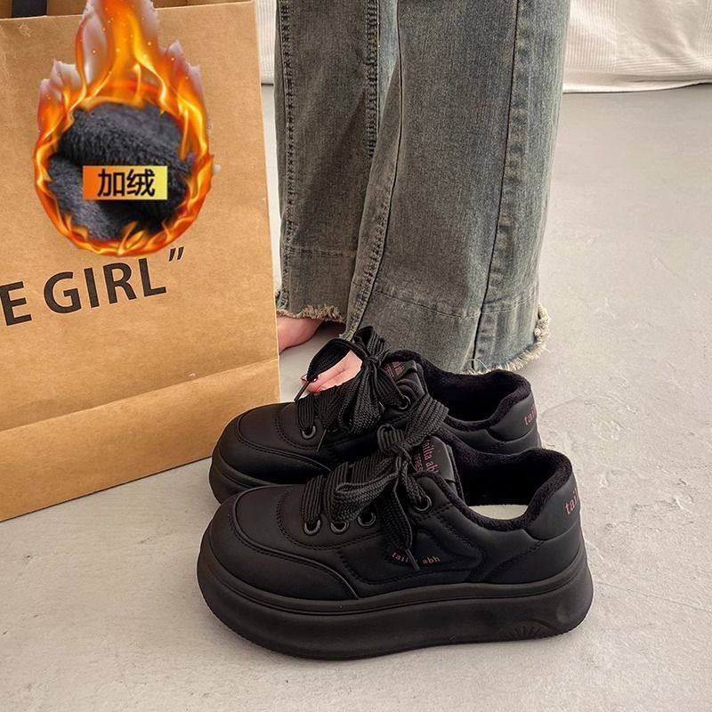韩版厚底圆头面包鞋女2026新款冬季加绒保暖松糕底休闲百搭板鞋子