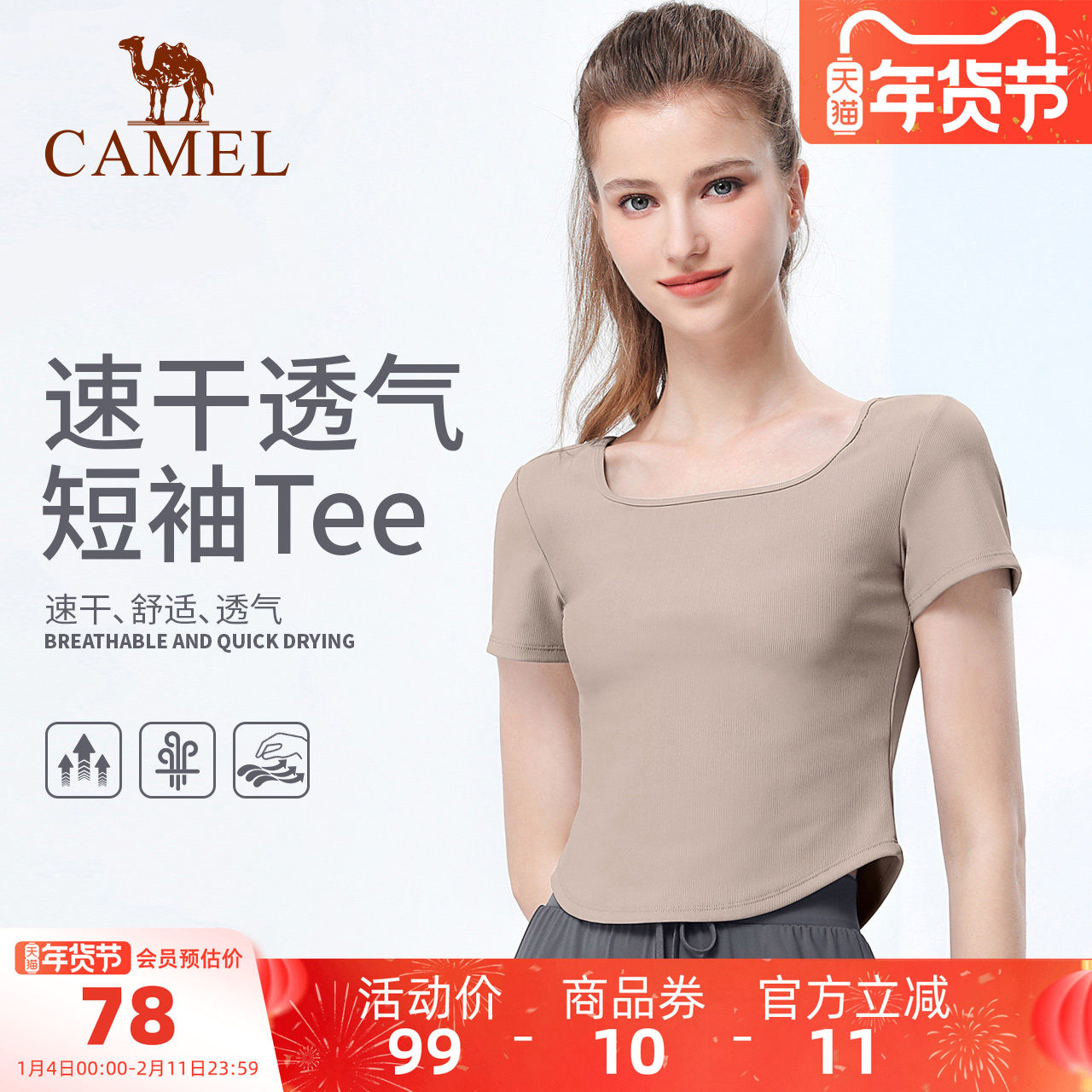 骆驼瑜伽服女款夏季短袖透气速干跑步衣健身衣服上衣薄款运动t恤