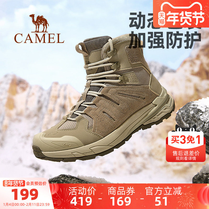 骆驼男鞋冰川高帮靴子2025新款男防滑耐磨户外登山徒步女工装靴
