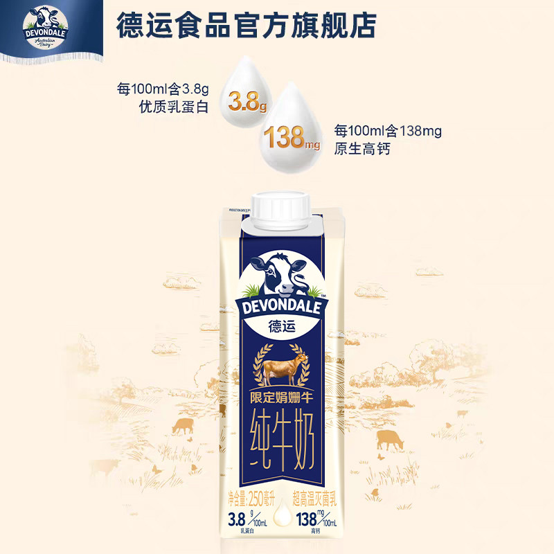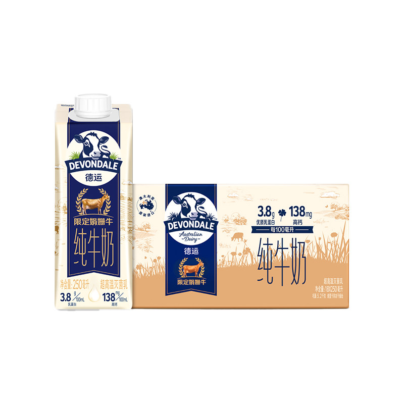德运Devondale高钙娟姗奶3.8g乳蛋白纯牛奶250ml*18瓶效期清仓