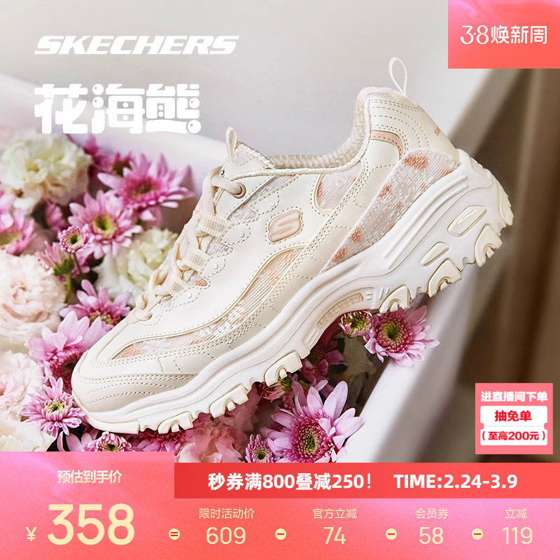 斯凯奇花海熊新款增高老爹鞋女士厚底鞋子休闲透气运动鞋时尚百搭