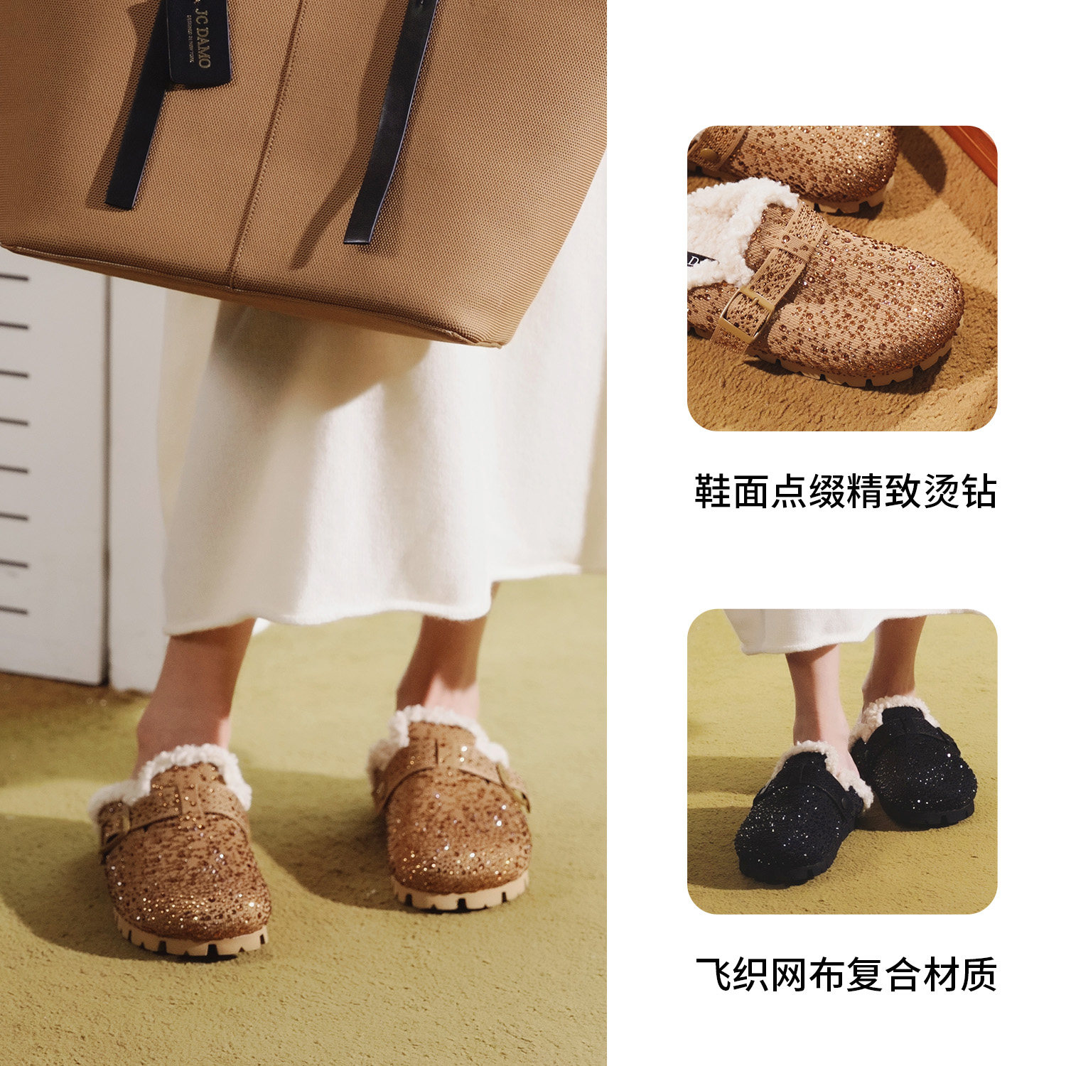 JC DAMO百搭加绒勃肯鞋女2025冬季新款大头平底毛毛拖鞋外穿潮流