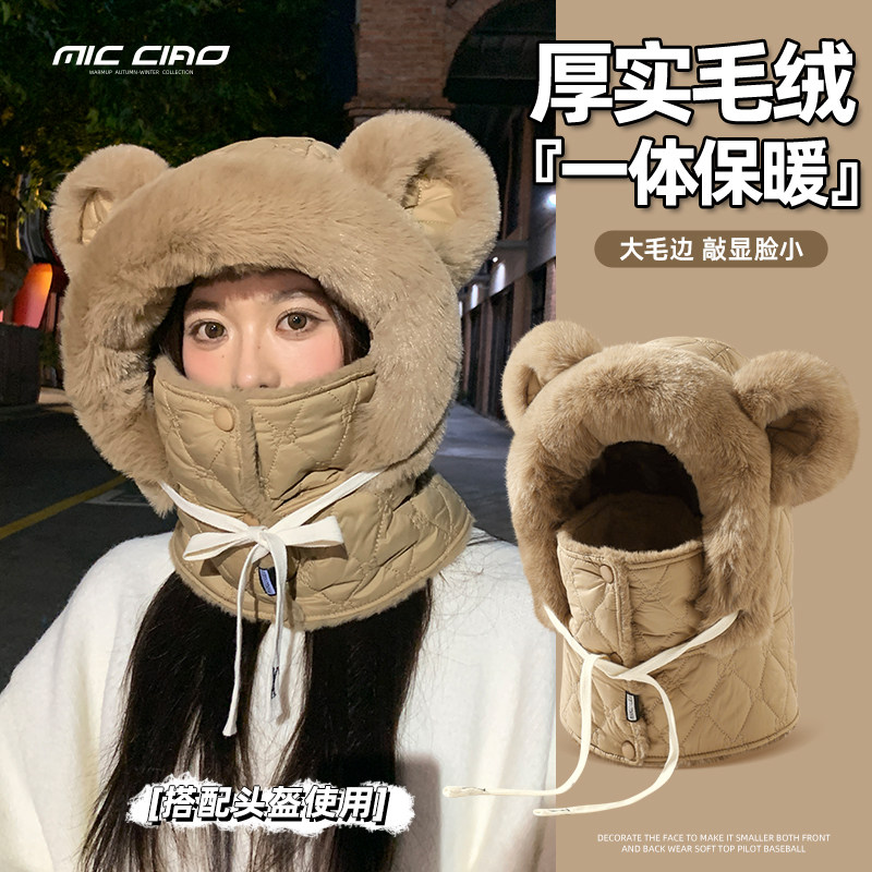 冬季防风帽子围脖一体女防寒面罩骑行电动车头盔内胆保暖神器头套
