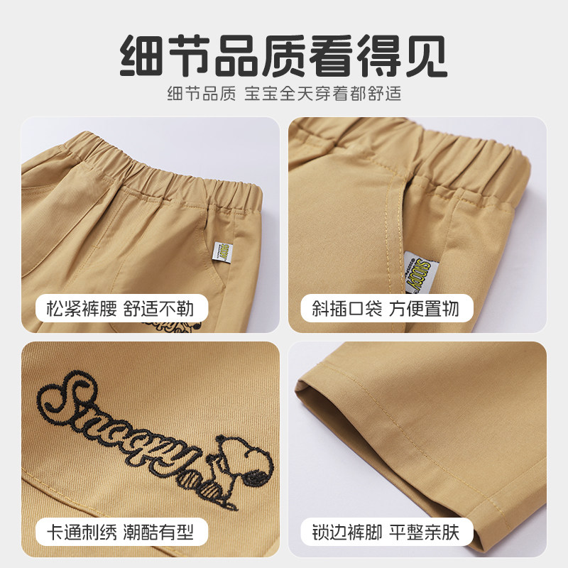 史努比童装男童裤子2025新款梭织长裤夏季防蚊裤宝宝纯棉休闲裤潮