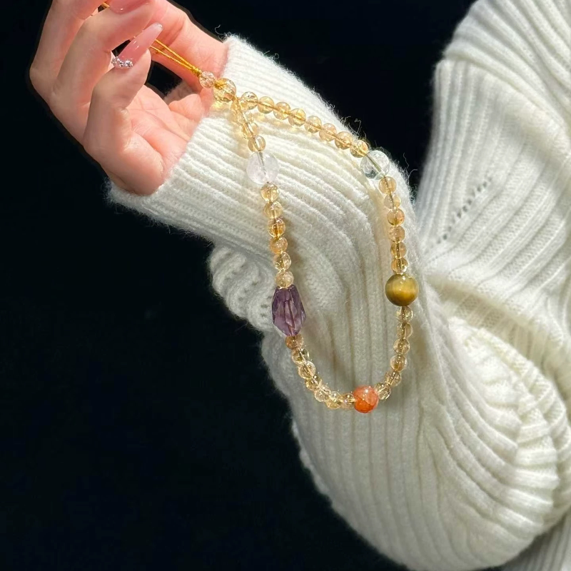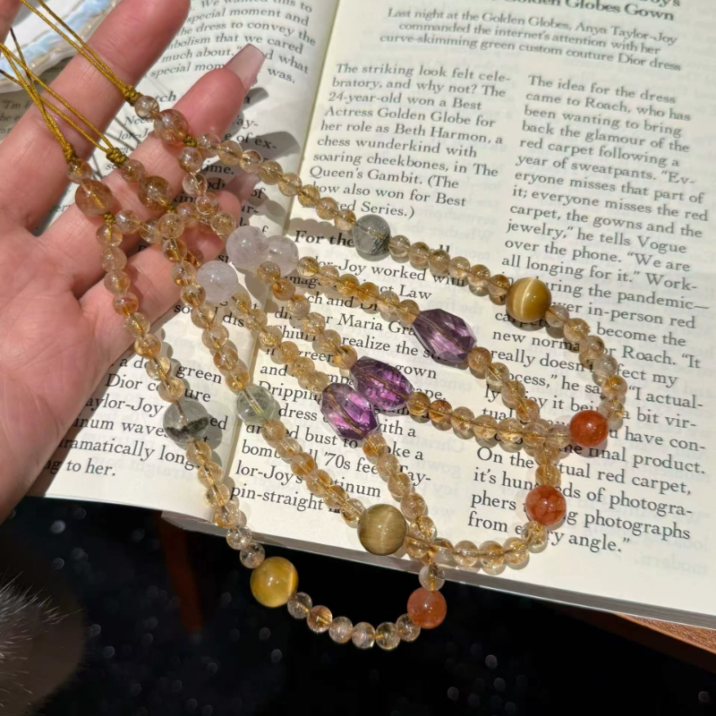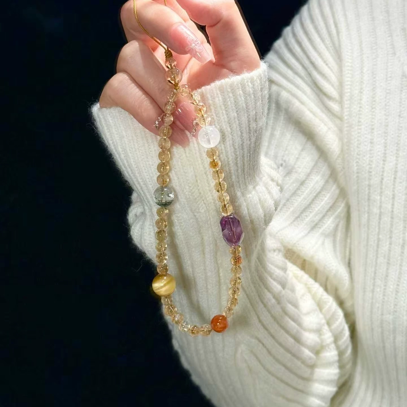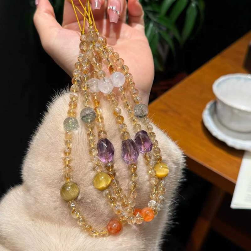 原创设计天然水晶黄塔晶手机挂绳手腕款防丢包包挂件车挂钥匙挂