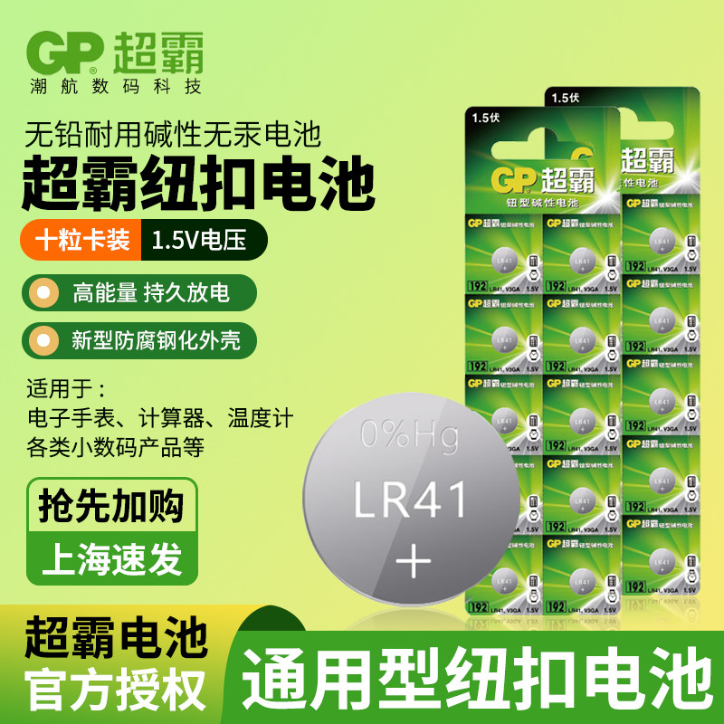 GP超霸lr41纽扣电池ag3体温计gp192手表温度计AG3 392A L736发光耳勺灯测电笔钮扣电子手表欧姆龙圆形电池