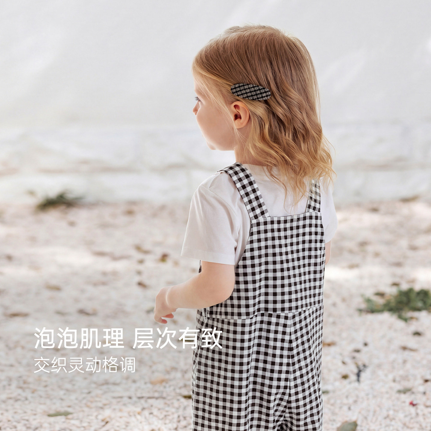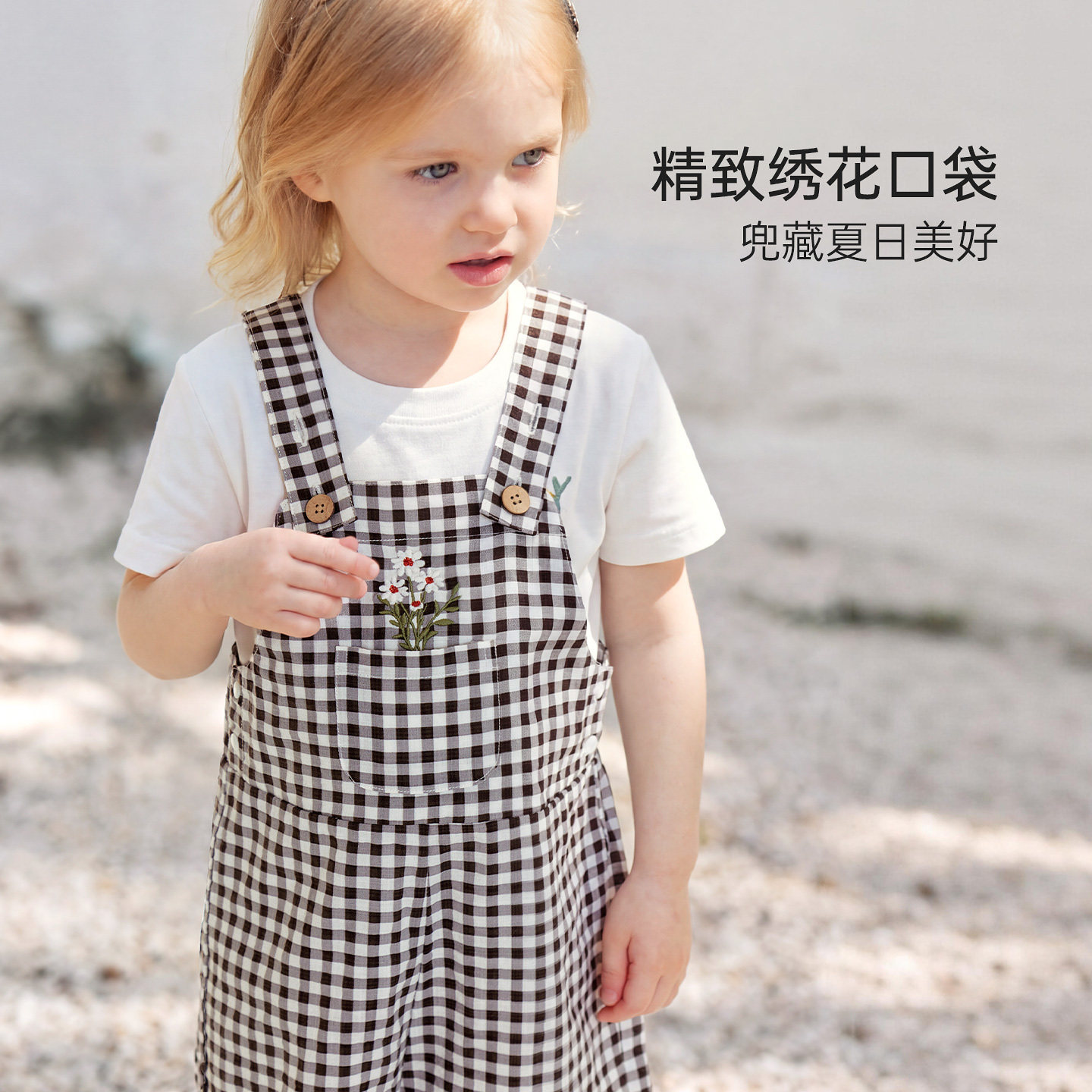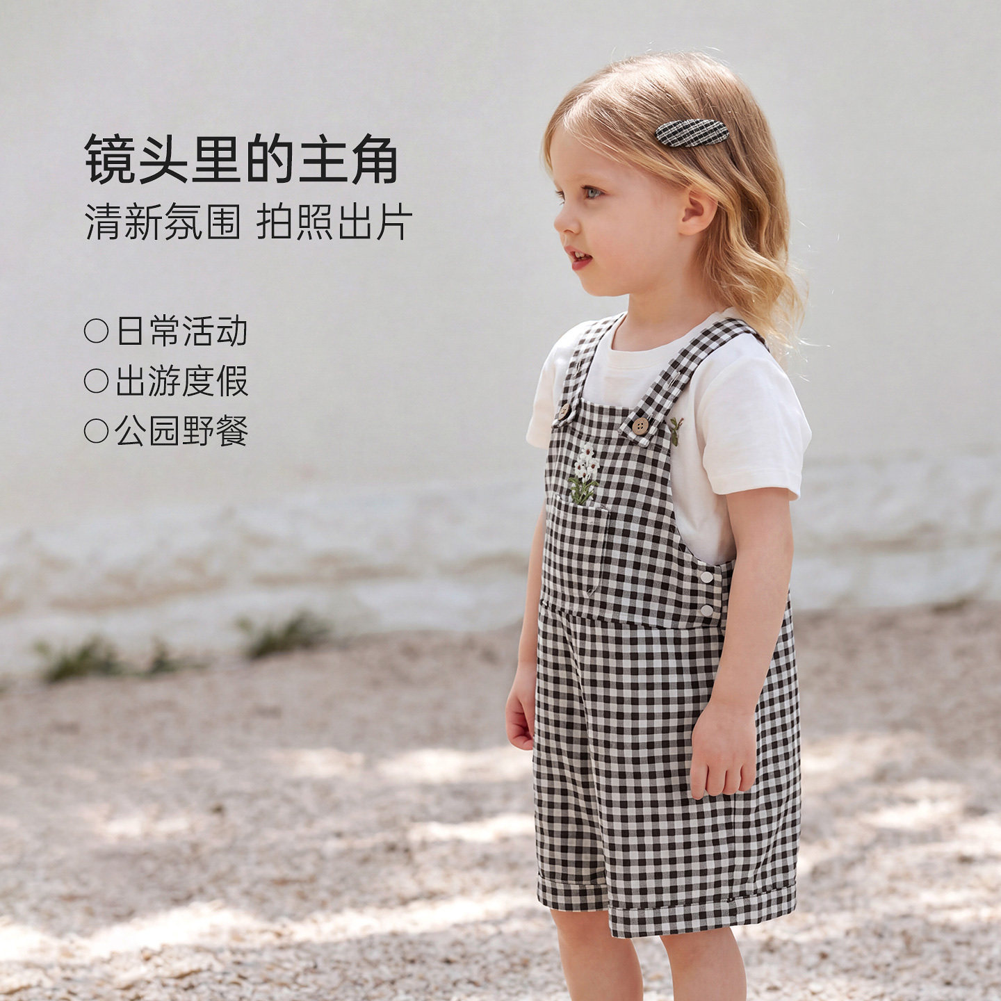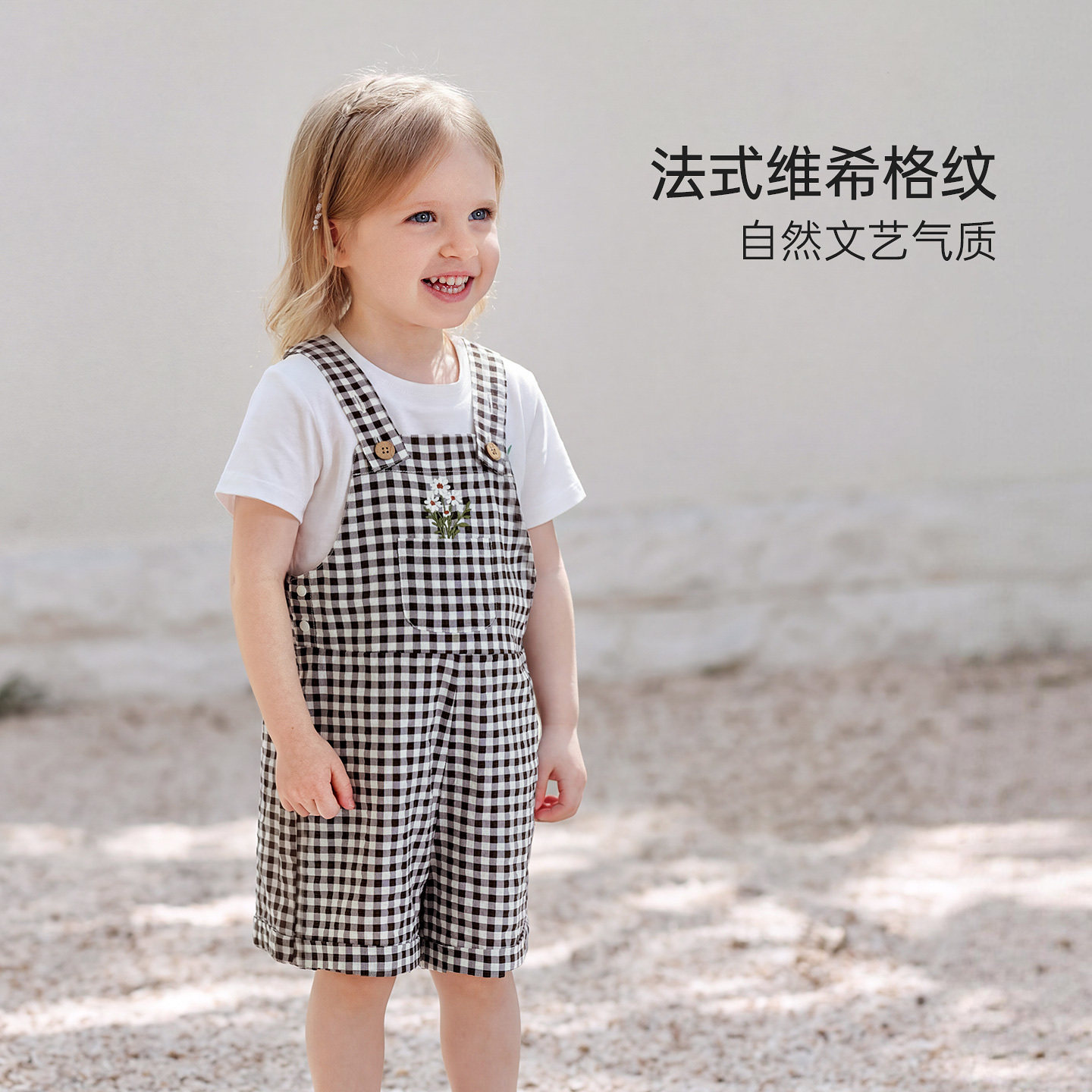 babylove女宝宝背带裤夏季休闲短裤婴幼儿格纹百搭裤子维希风尚