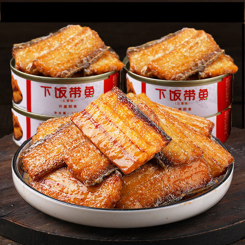 老牌子五香带鱼罐头即食中段红烧带鱼肉零食年货下饭菜香辣解馋