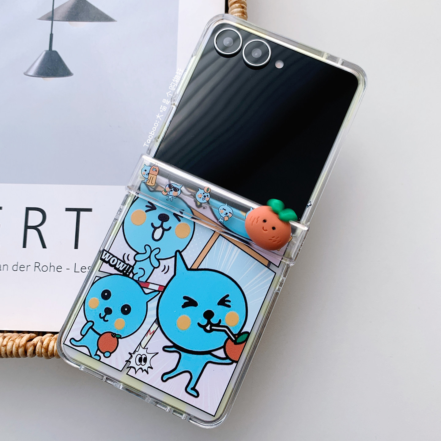 可爱酷儿旋转橙子适用于三星zflip7/6手机壳华为pocket2硬壳小米mixflip2小折叠屏荣耀MagicVFlip翻盖保护套