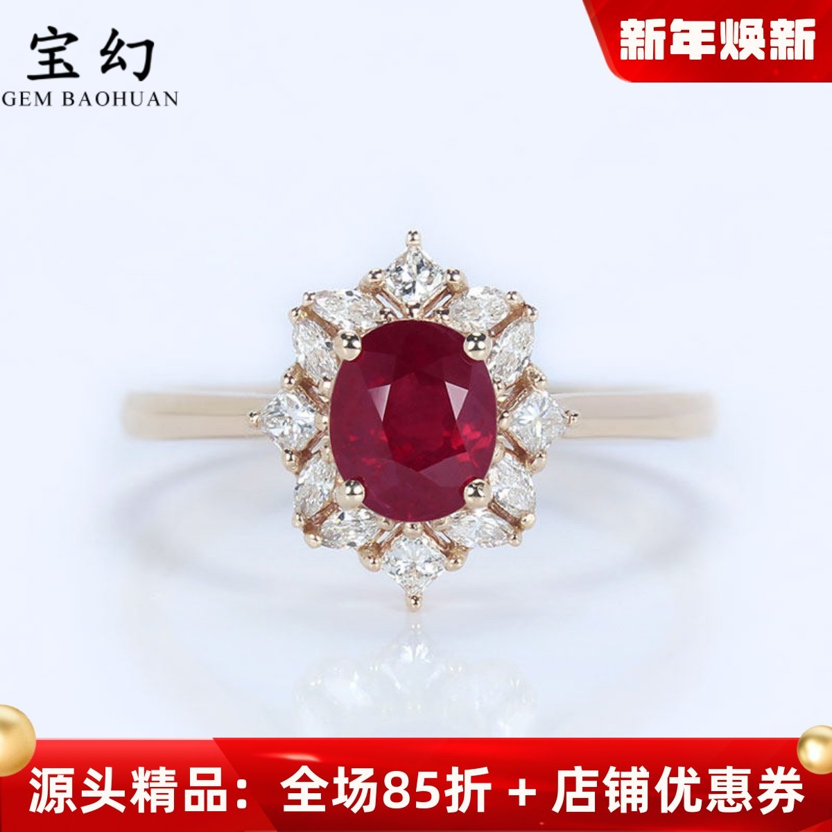 G18K玫瑰金缅甸天然鸽血红宝石戒指 1克拉满镶钻石正品女款双证书