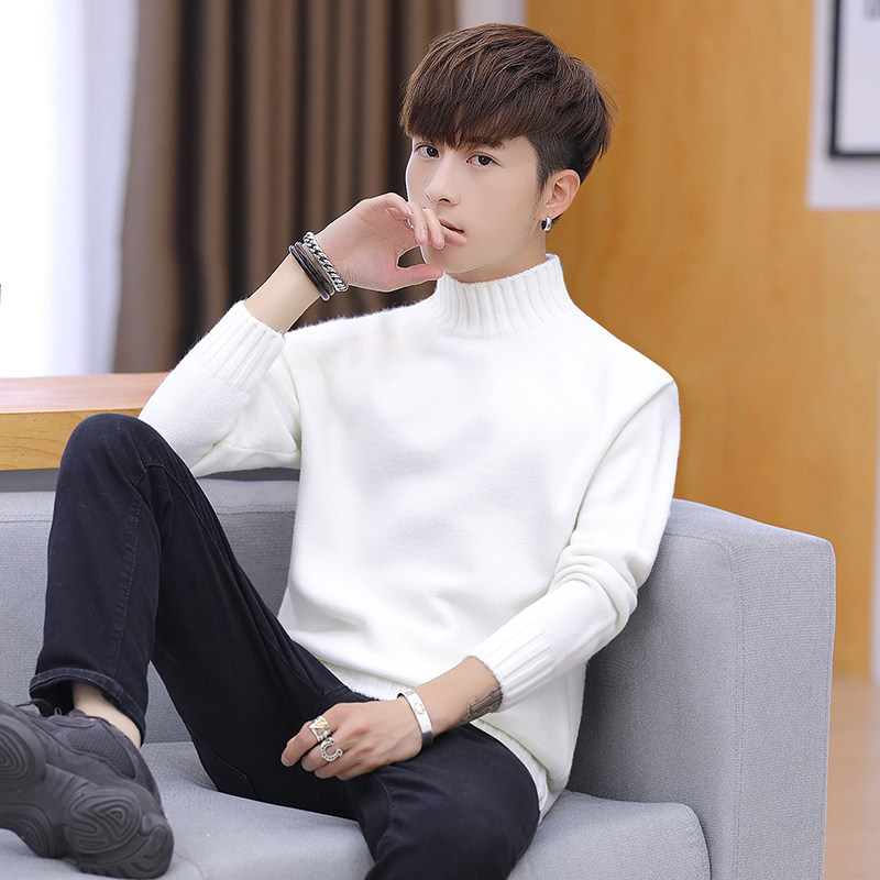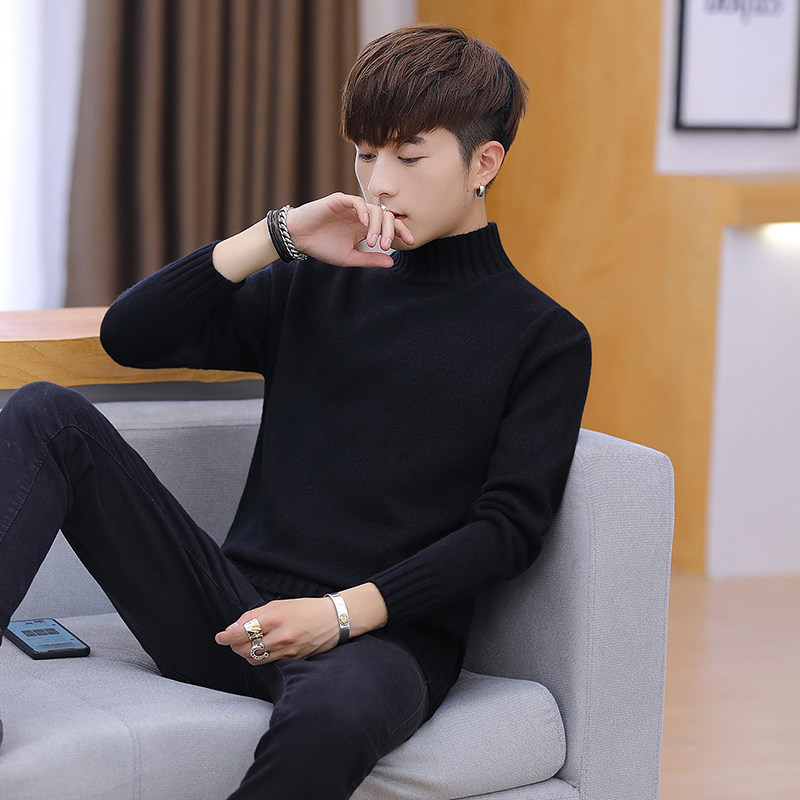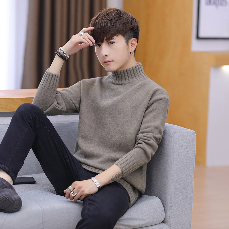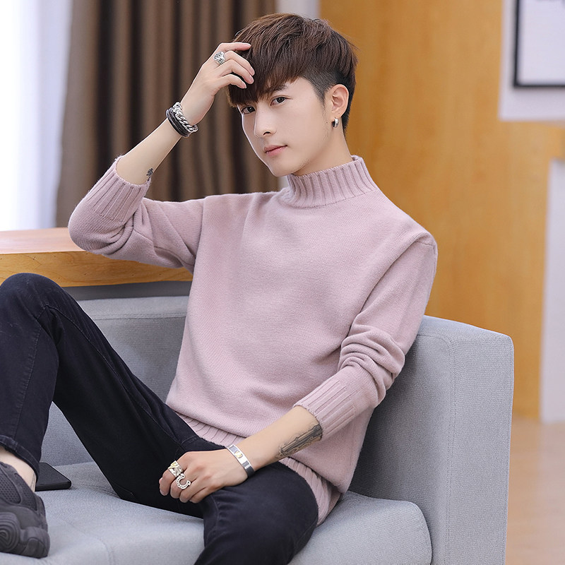 秋冬季男士毛衣半高领韩版潮流宽松个性打底毛线衣男装针织衫外套