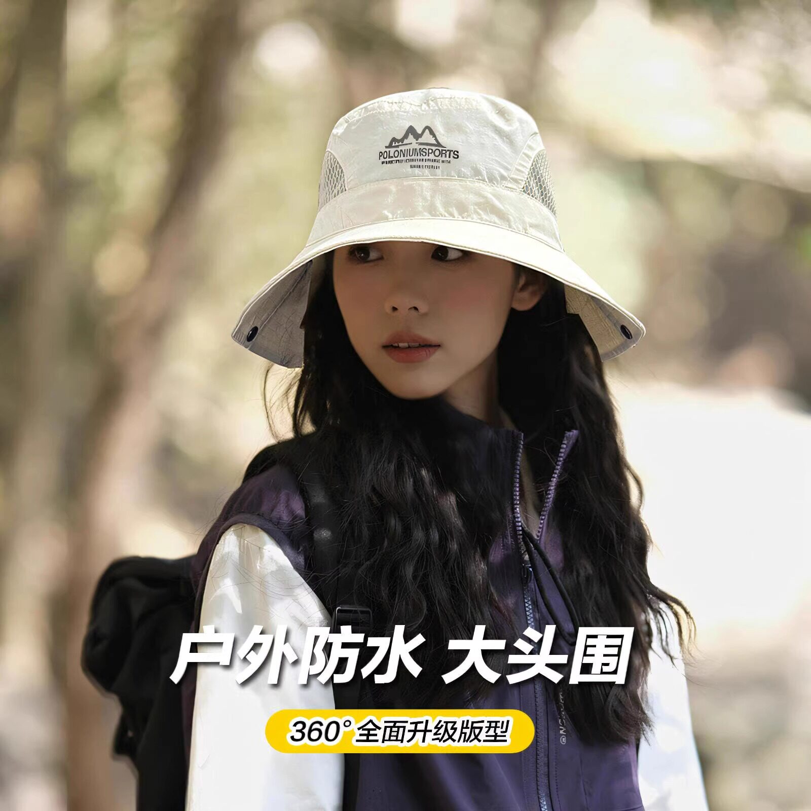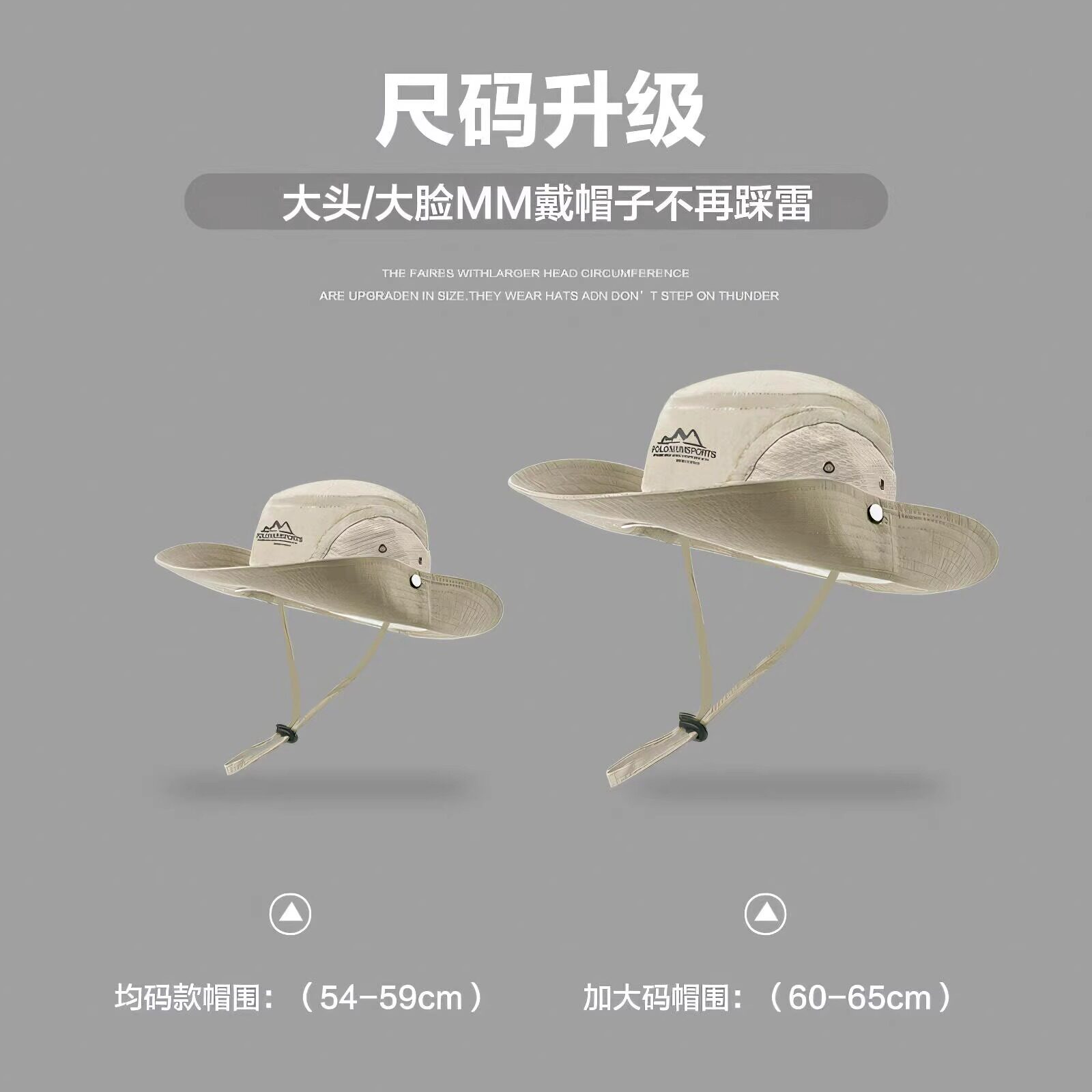 户外防晒登山帽女夏季大头围渔夫帽