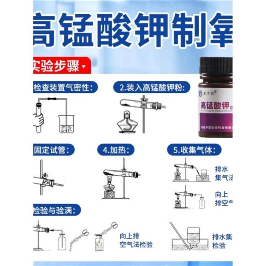 高锰酸钾粉末高纯度初中化学实验分析纯氧气制取实验室用器材全套