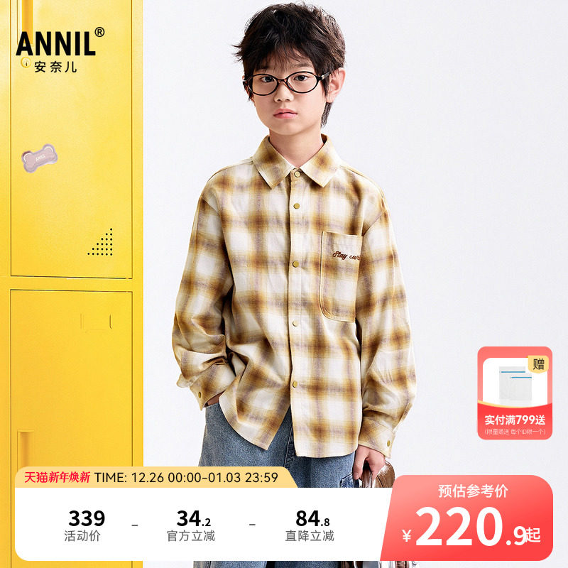 【商场同款】安奈儿童装男童翻领长袖衬衫2025秋新款纯棉AB531126