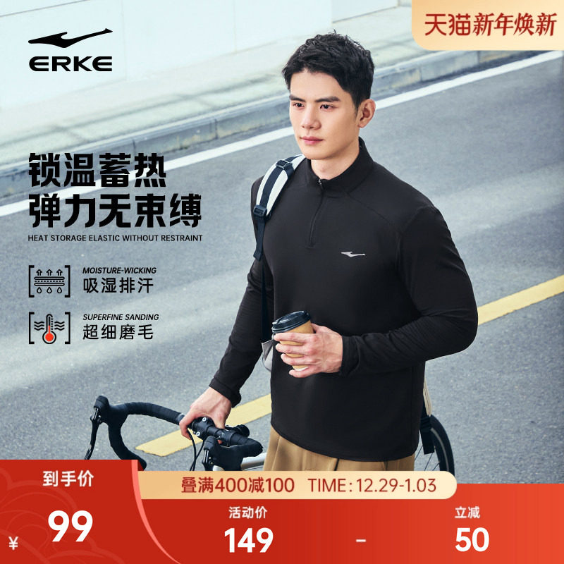 鸿星尔克半拉链长袖t恤男款冬季男士跑步速干衣运动加厚上衣卫衣