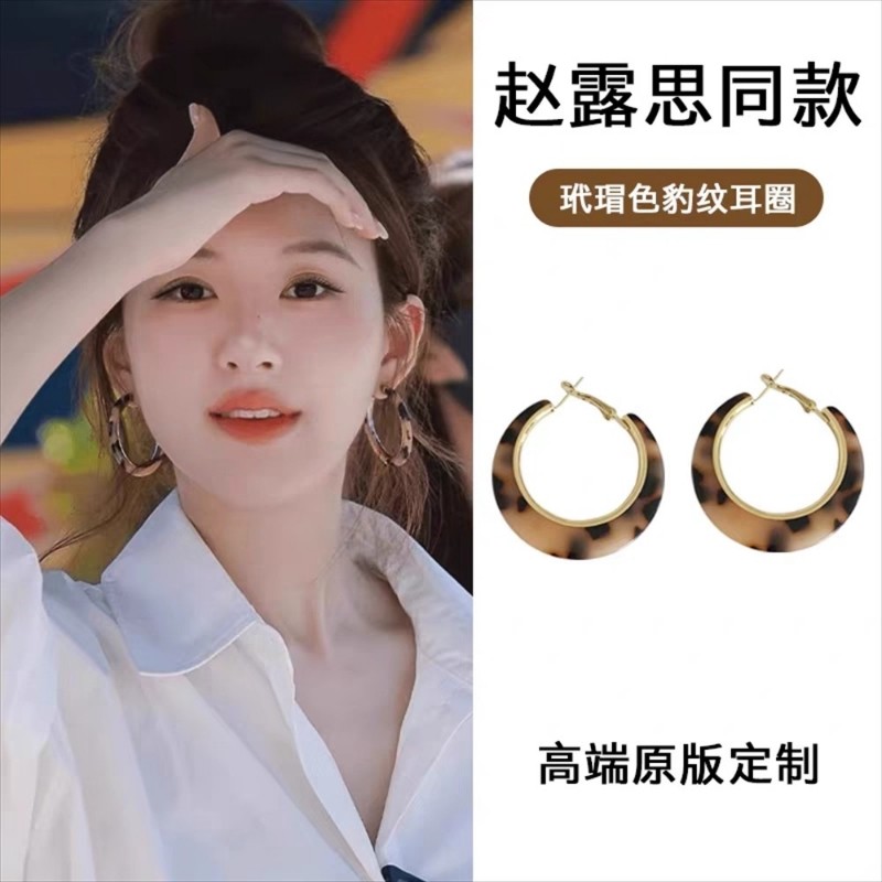 许我耀眼赵露思同款豹纹圈圈耳环女港风复古气质夸张耳扣耳圈耳饰