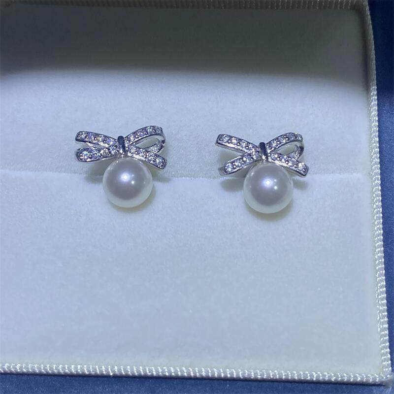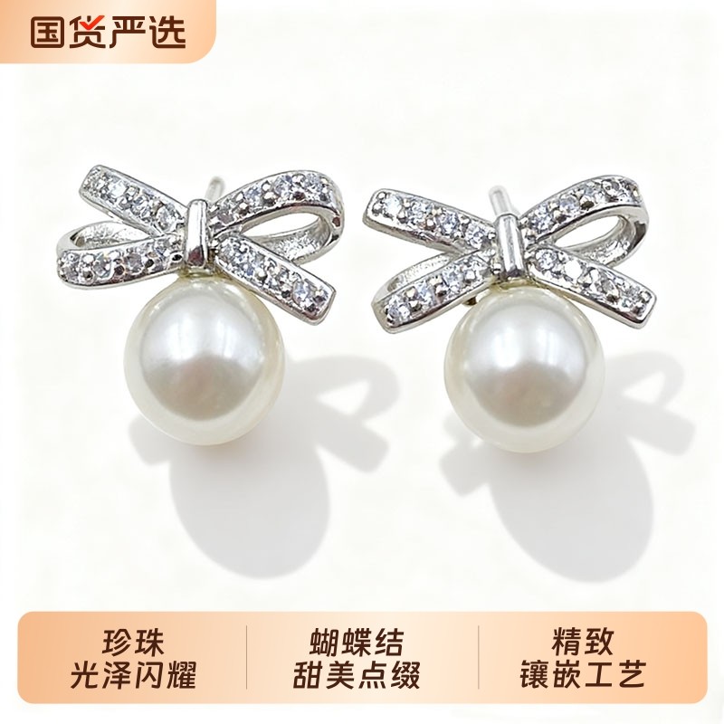 精工爆款通体925银小香风蝴蝶结淡水珍珠耳钉轻奢耳环2025新款