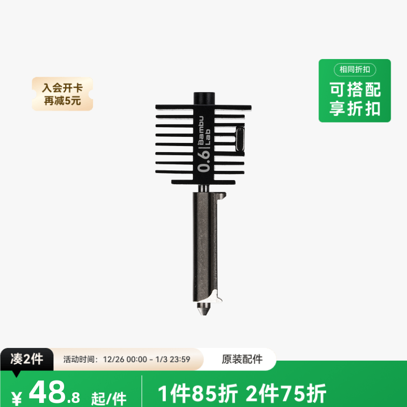 拓竹 0.4mm不锈钢硬化钢喷嘴组件 3D打印机配件 【A1/A1 mini 适用】