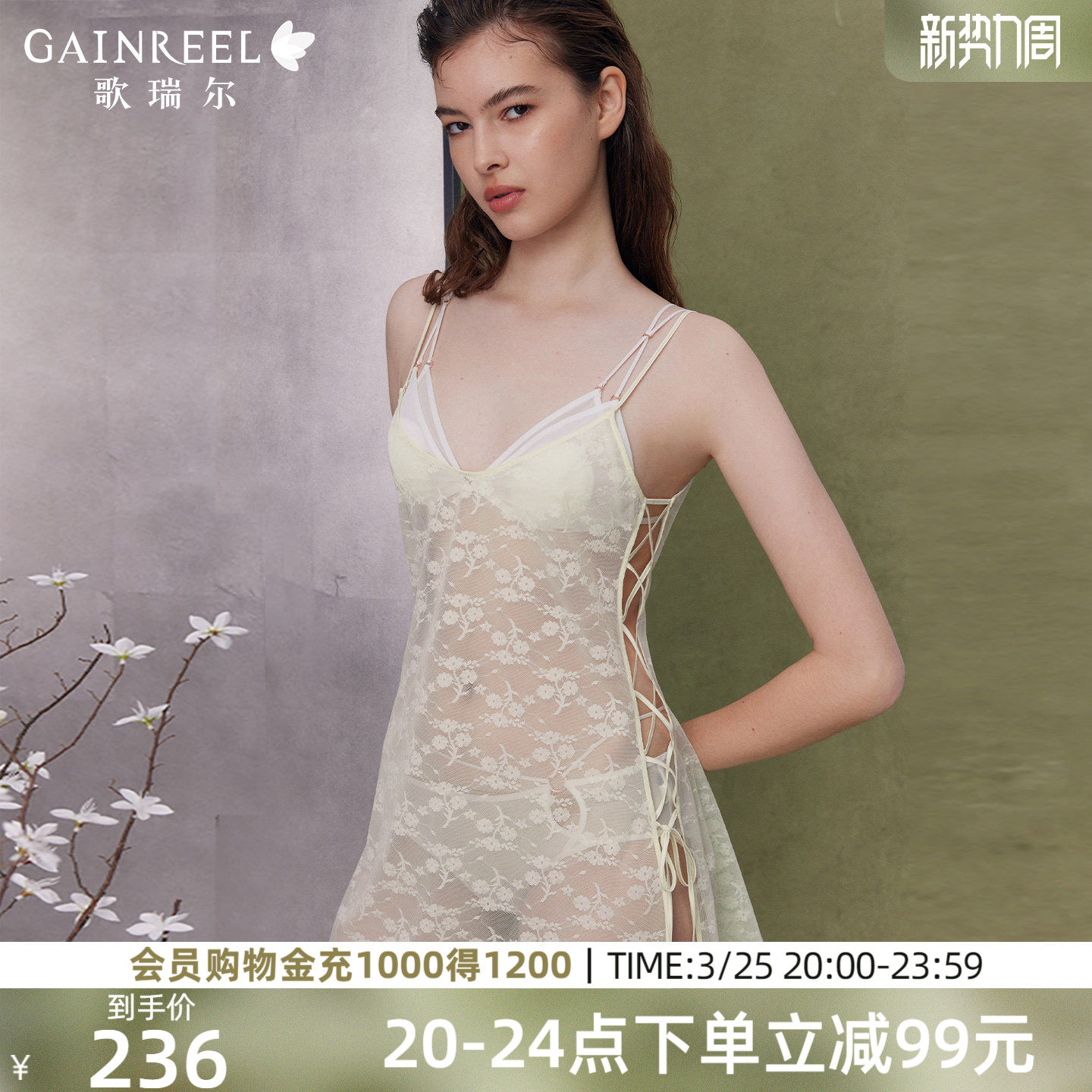 歌瑞尔性感禁欲系吊带睡裙深V法式轻薄蕾丝睡衣女2026新款家居服