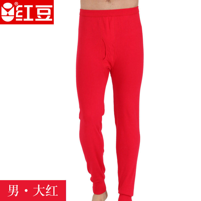 红豆男款100%纯棉秋裤白色保暖线裤男款全棉毛裤热疗养生馆理疗裤