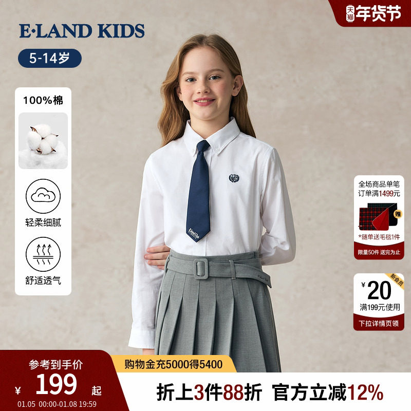 【100%棉】eland kids衣恋童装男童衬衫2025年秋季新品学院风女童