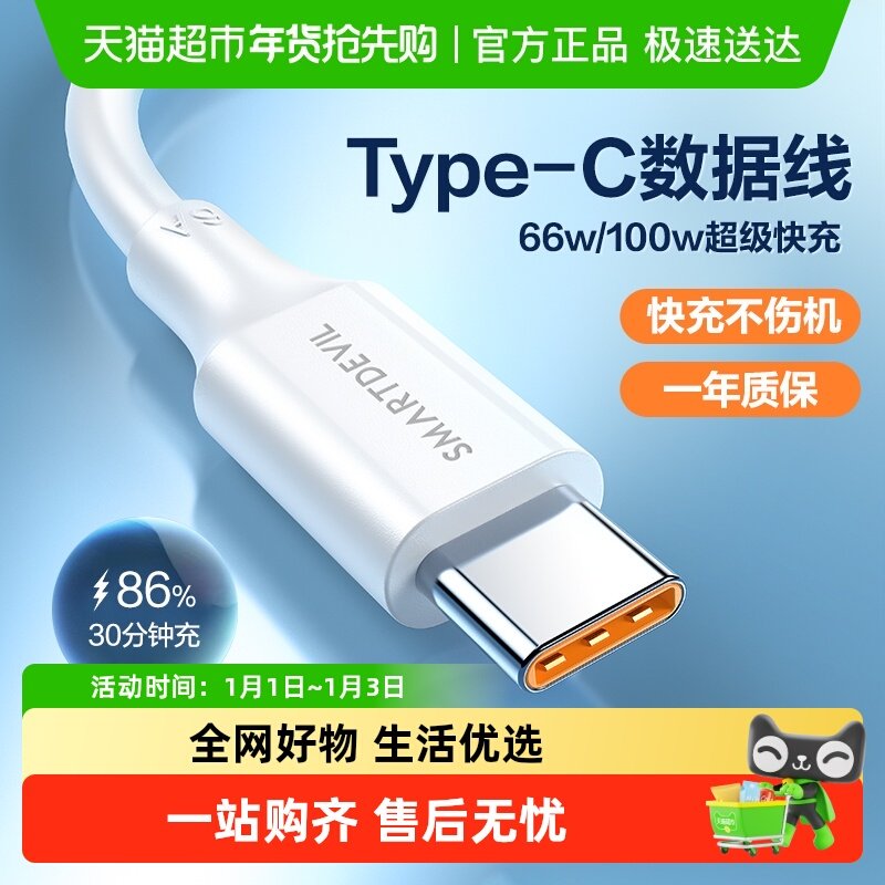 闪魔type-c数据线6a超级快充66w适用华为mate40小米typec充电线