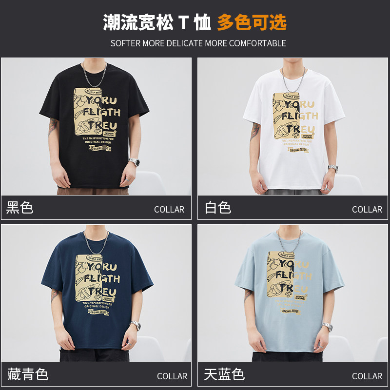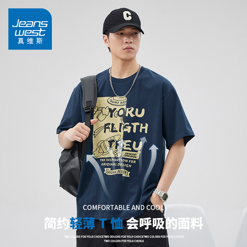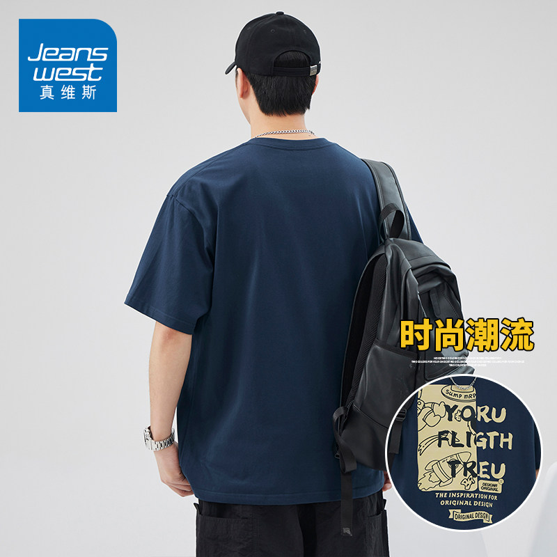 KZH真维斯重磅短袖T恤男夏季薄款宽松透气打底衫潮牌印花休闲上衣